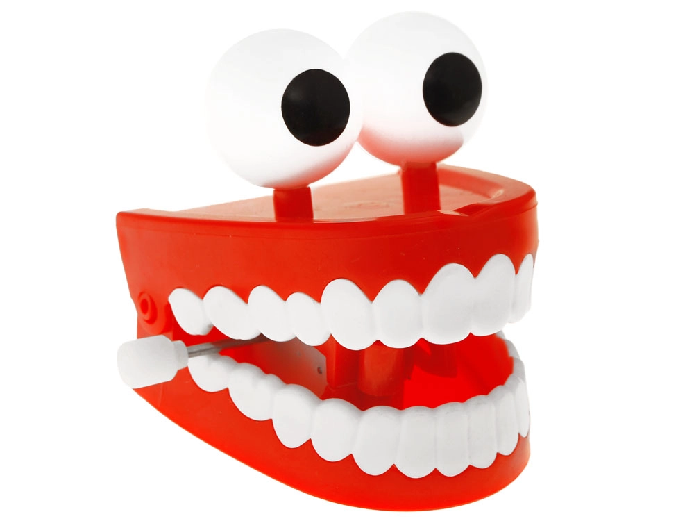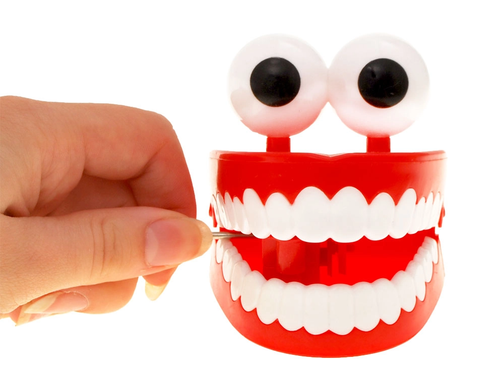 Без батерии – достатъчни са няколко завъртания на ключето и зъбите сами тръгват и започват да щракат.