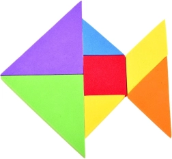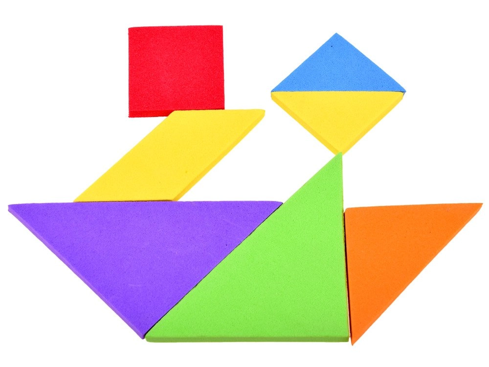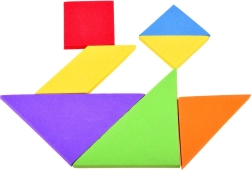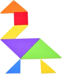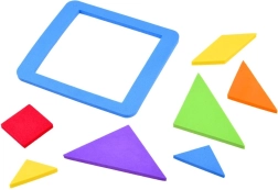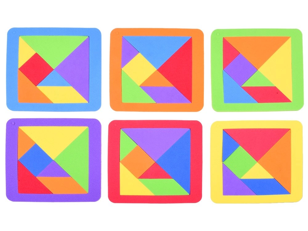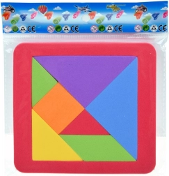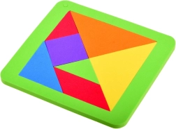 Този класически танграм в модерно пянено изпълнение предлага часове умна забава. От осем елемента, включително рамката, можете да подреждате десетки силуети и картинки – по шаблон или по собствена фантазия. Мекият материал е приятен на допир и безопасен за деца.
