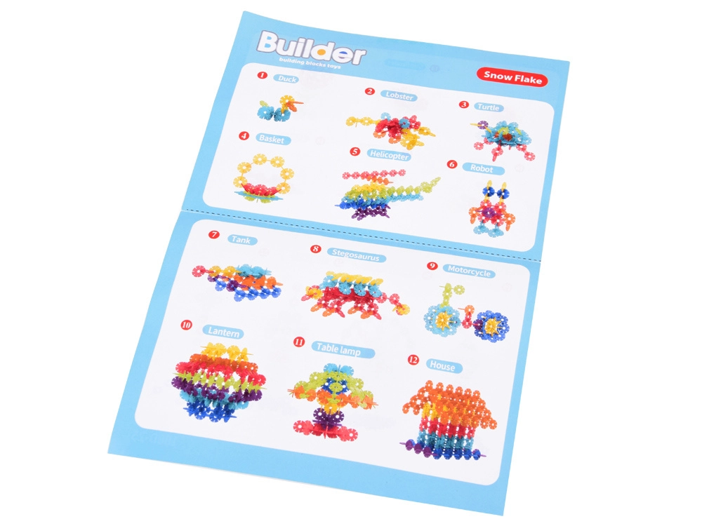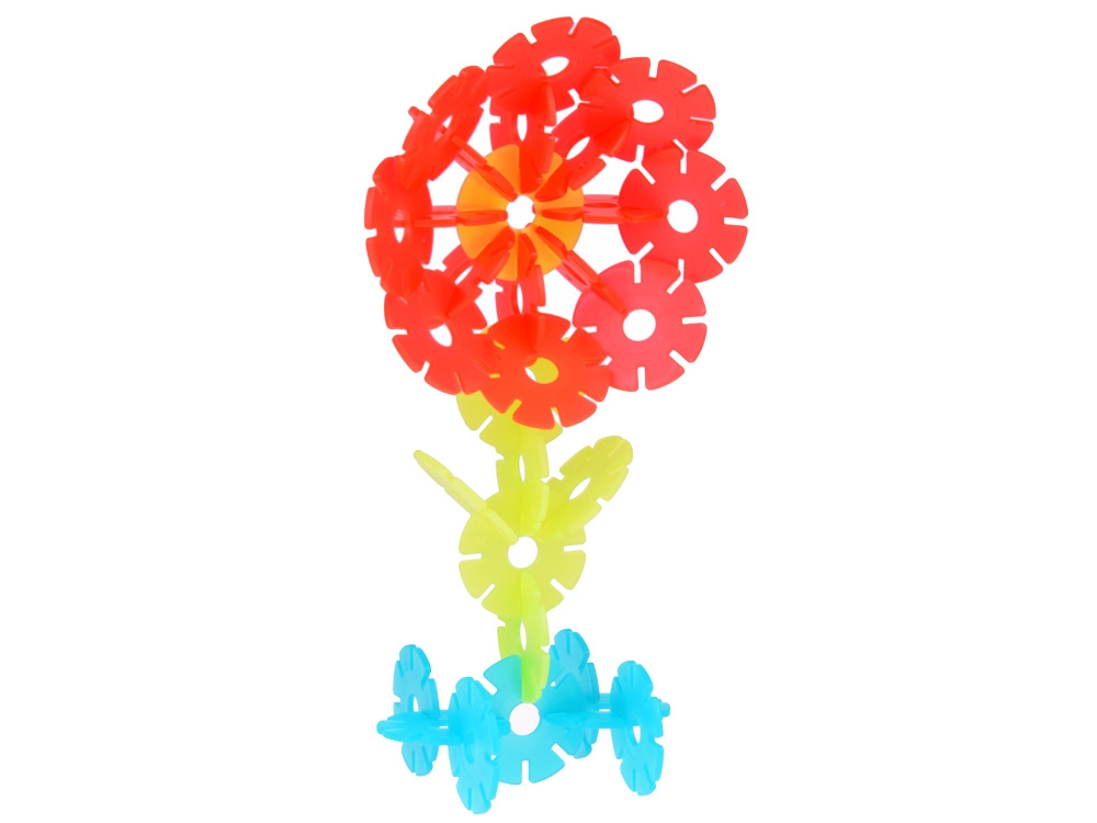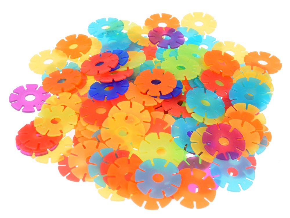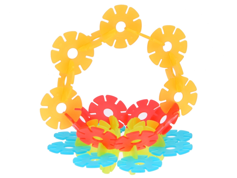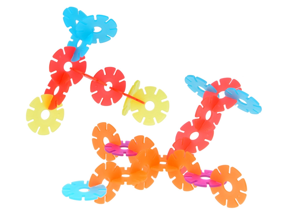 Интензивните цветове стимулират зрението, а релефните ръбове – осезанието. Снежинковите елементи са леки, издръжливи и идеални за самостоятелна и обща игра. От снежинките могат да се подреждат и букви и цифри, така че конструкторът естествено подпомага ранното обучение.