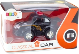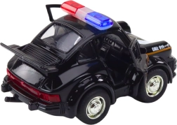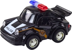 Тази елегантна черна полицейска кола в мащаб 1:38 ще бъде оценена от всеки почитател на автомобилните класики. Оборудвана е с инерционно задвижване, което позволява бързо движение напред след издърпване назад.