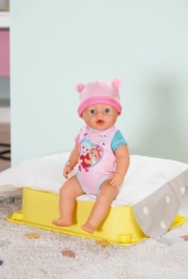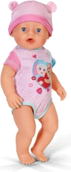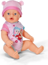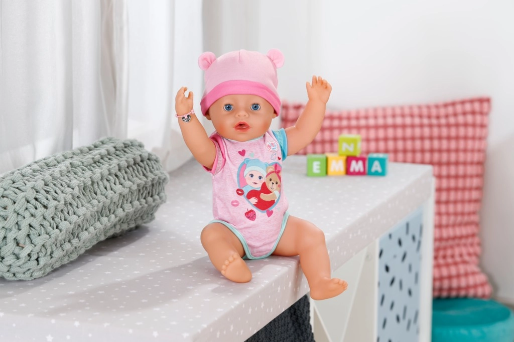 Потопете се в света на Baby Born с куклата Ема, която пристига в своя очарователен нов тоалет и предлага десет реалистични функции. Този комплект включва и десет забавни аксесоара, като вълшебна чиния, лъжица, биберон, шише, пелена и гърне с водна функция. Ема може да пие, да плаче истински сълзи, да спи, да се къпе и да пълни пелената си. Очите й се отварят и затварят с помощта на въртящ се биберон. Не изисква батерии и е подходяща за деца от 3 години.
