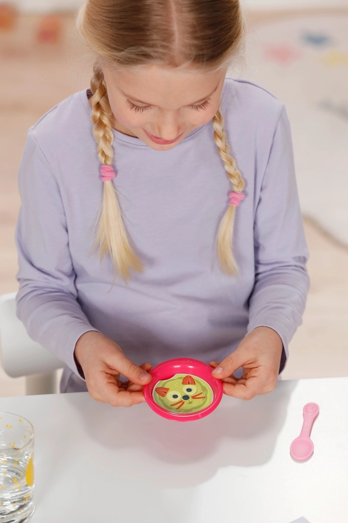 С Ема всяка игра става вълшебна. Тя не само може да ползва гърне, но и нейната вълшебна чиния разкрива вкусна храна само с помощта на вода. Този детайлен комплект насърчава децата да играят на грижи, развива въображението им и подпомага фината им моторика. Куклата Ема е проектирана да издържи поколения и да донесе радост на всички малки почитатели на Baby Born.