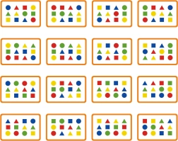 - 12 двустранни блокчета – цветове от едната страна, форми от другата