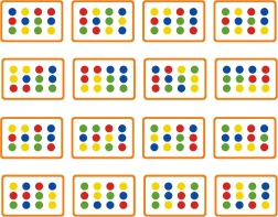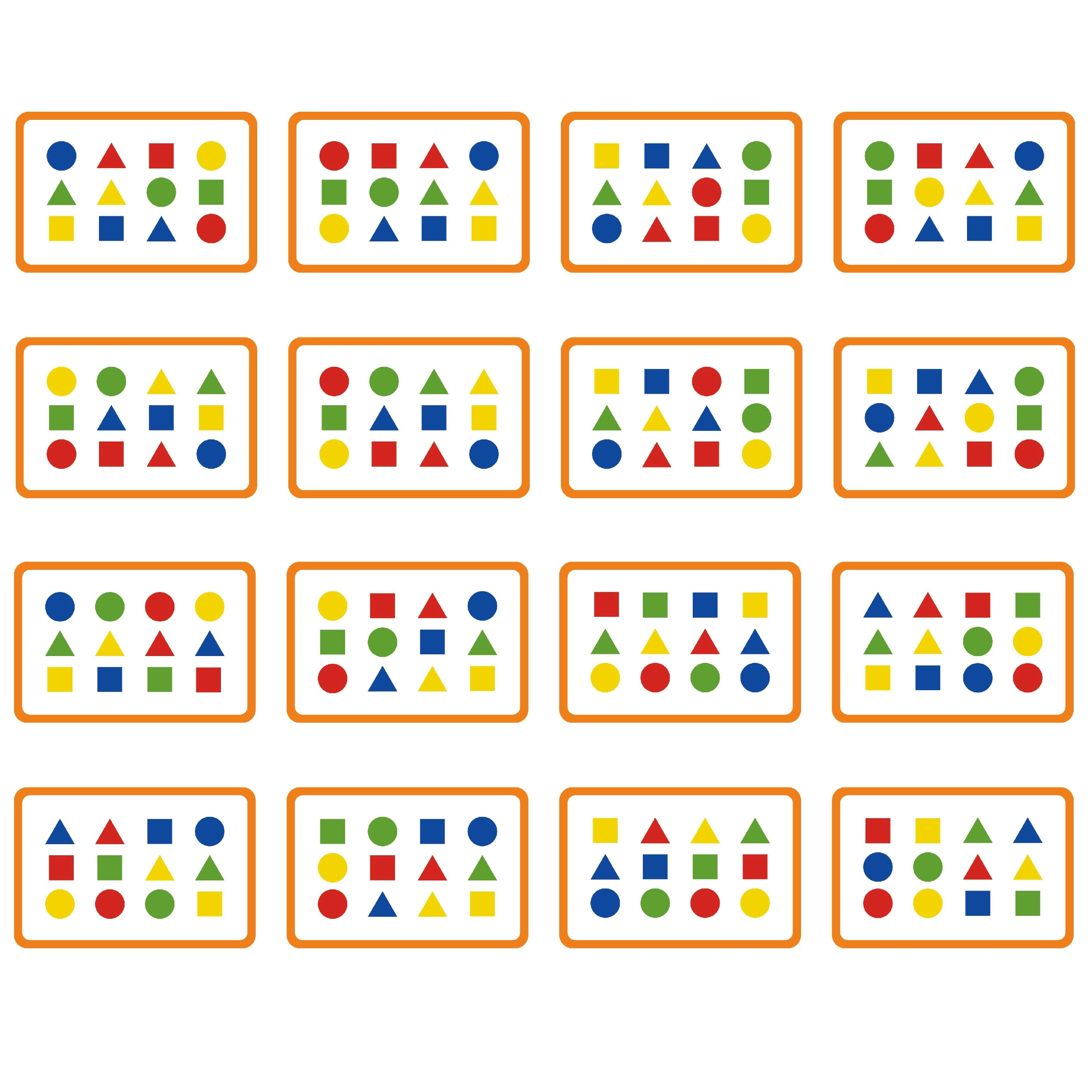Децата подреждат блокчетата така, че да съответстват на шаблона на картата. Започват с по-лесни цветови модели и плавно преминават към геометрични форми.