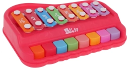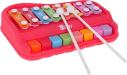 Музикално пианинo и ксилофон 2 в 1 за най-малките от 18 месеца подпомага развитието на ритъма и моториката. Изработено е от качествена пластмаса и метал, има ярки цветове и включва 2 палки за лесно свирене и откриване на звуци.
