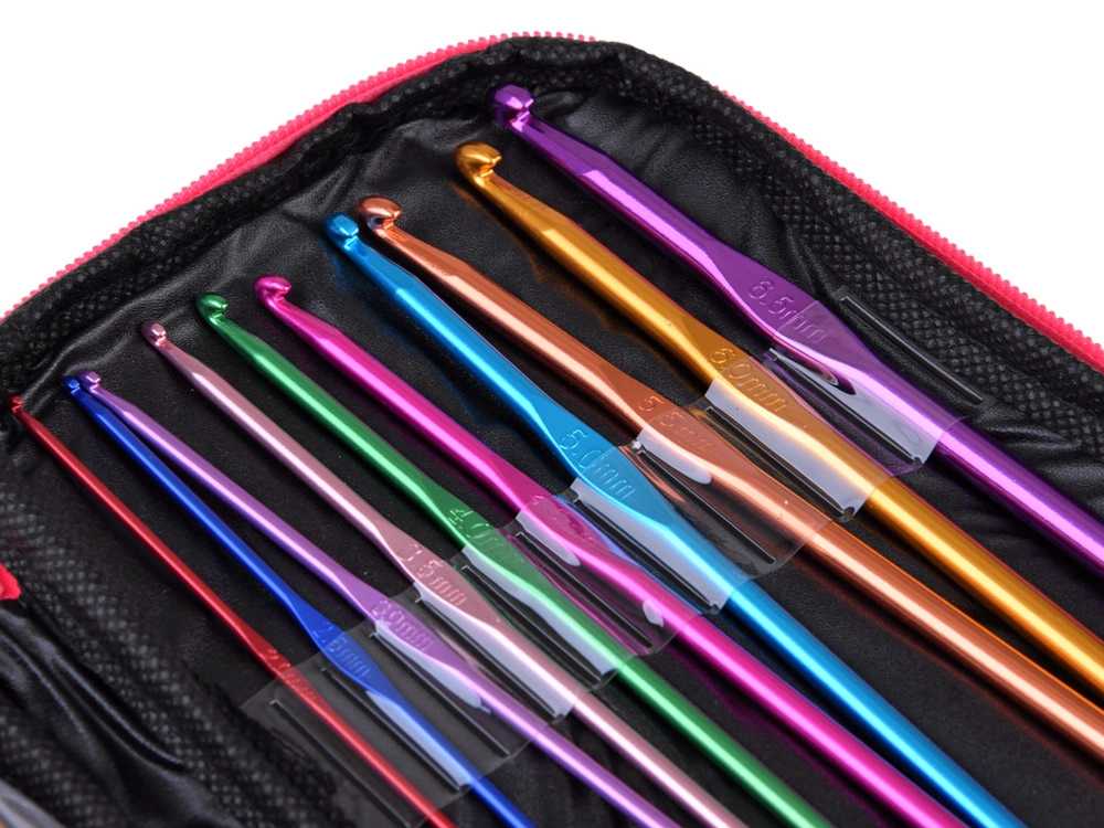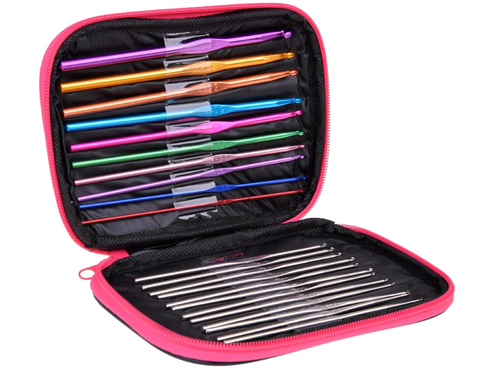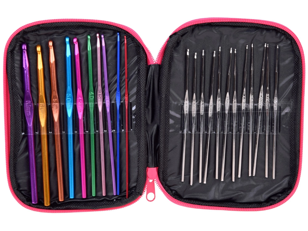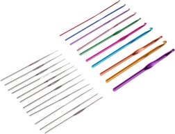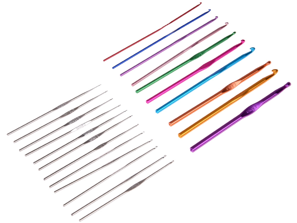 Запознайте се с 22 куки с размери от 0,6 мм до 6,5 мм. Металните куки са издръжливи и лесни за употреба, а разноцветното им изпълнение позволява бързо разпознаване на размера.