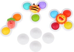 Играчките са идеални за развитие на фината моторика, координация око–ръка и сензорно възприятие. Сигурното закрепване е осигурено от качествени вендузи, които се задържат добре върху гладки повърхности – перфектни за игра по време на къпане и по време на пътуване.