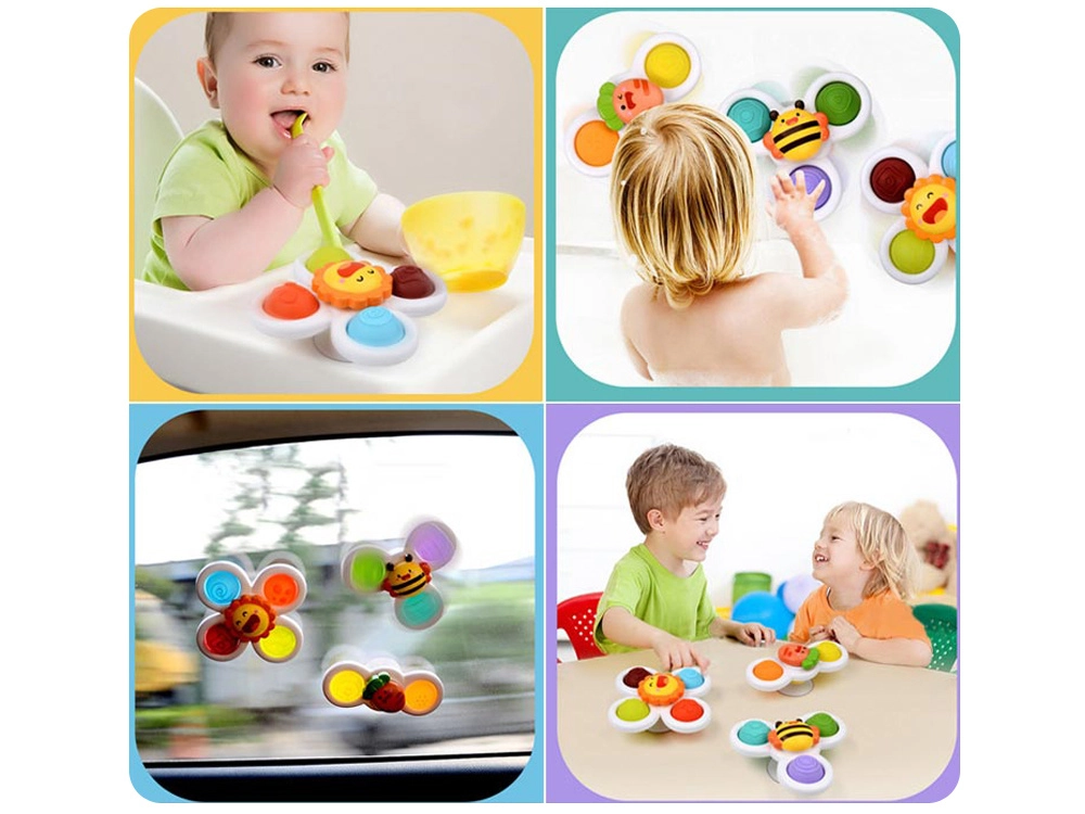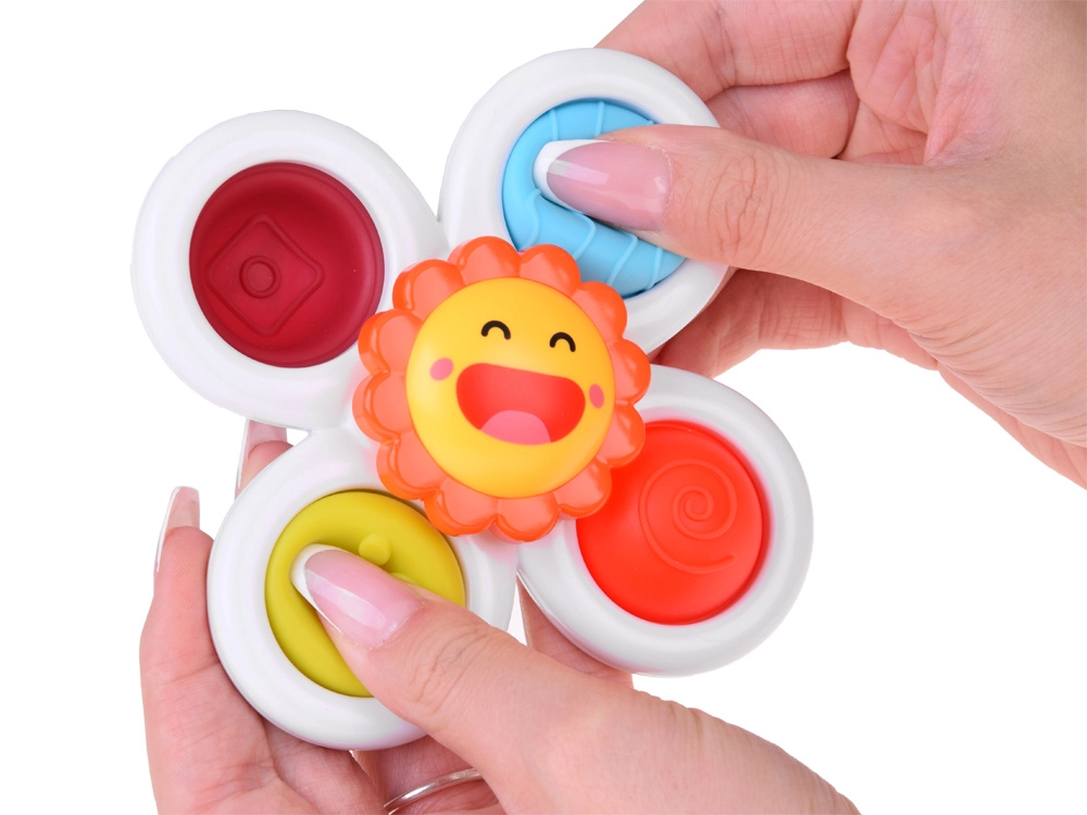 - 3× сензорен фиджет спинър с вендуза (слънчице, пчеличка, морковче)