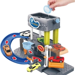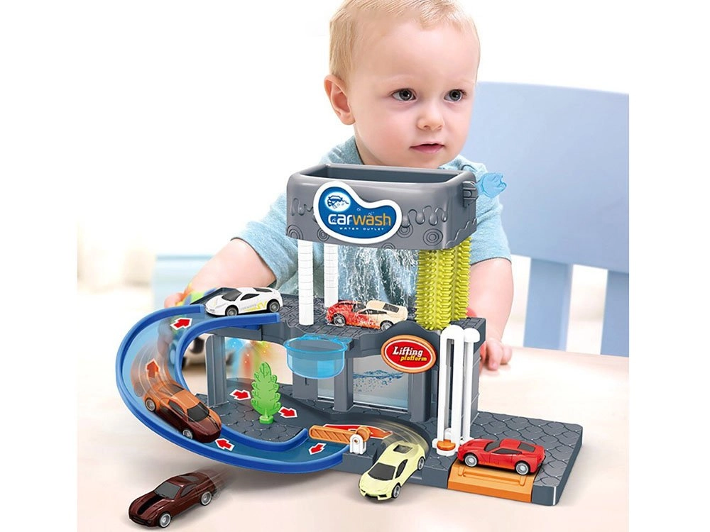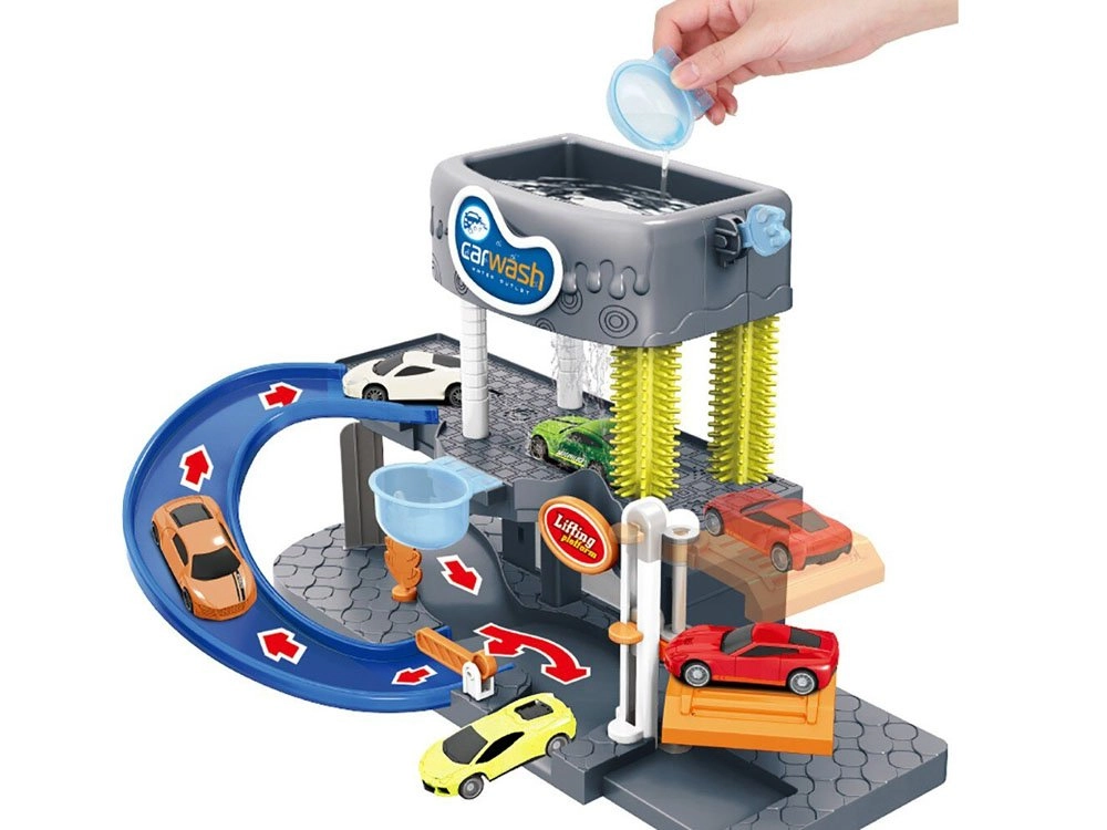 Тази двуетажна пластмасова автомивка превръща всяка игра в реалистично забавление. Децата ще се радват на миене на колички с истинска течаща вода, преместване между етажите чрез функционален асансьор и ефектен финал със светлинни и звукови ефекти. Силиконовите четки са щадящи, но и достатъчно издръжливи за многократна игра.