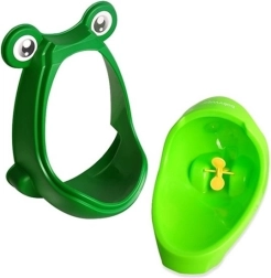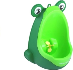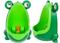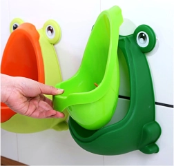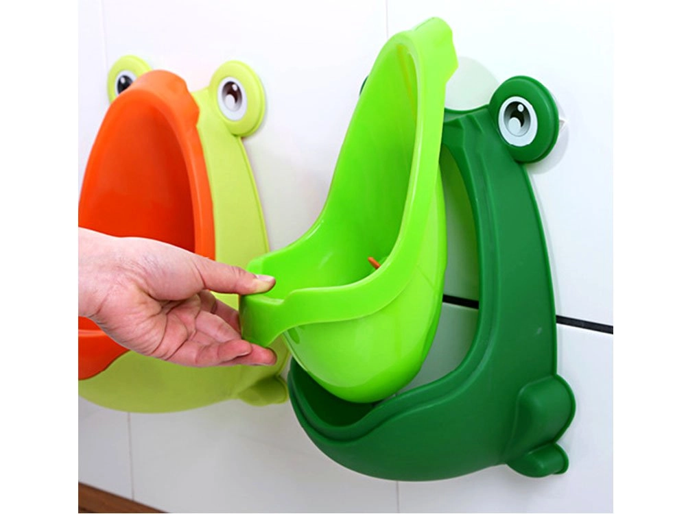Забавният детски стенен писоар във форма на жабка превръща приучването към тоалетна в игра. Благодарение на въртящата се мишена момчетата естествено тренират прицелването, подвижната купичка осигурява бързо почистване, а монтажът с вендузи без пробиване позволява да настроите височината според ръста на детето.