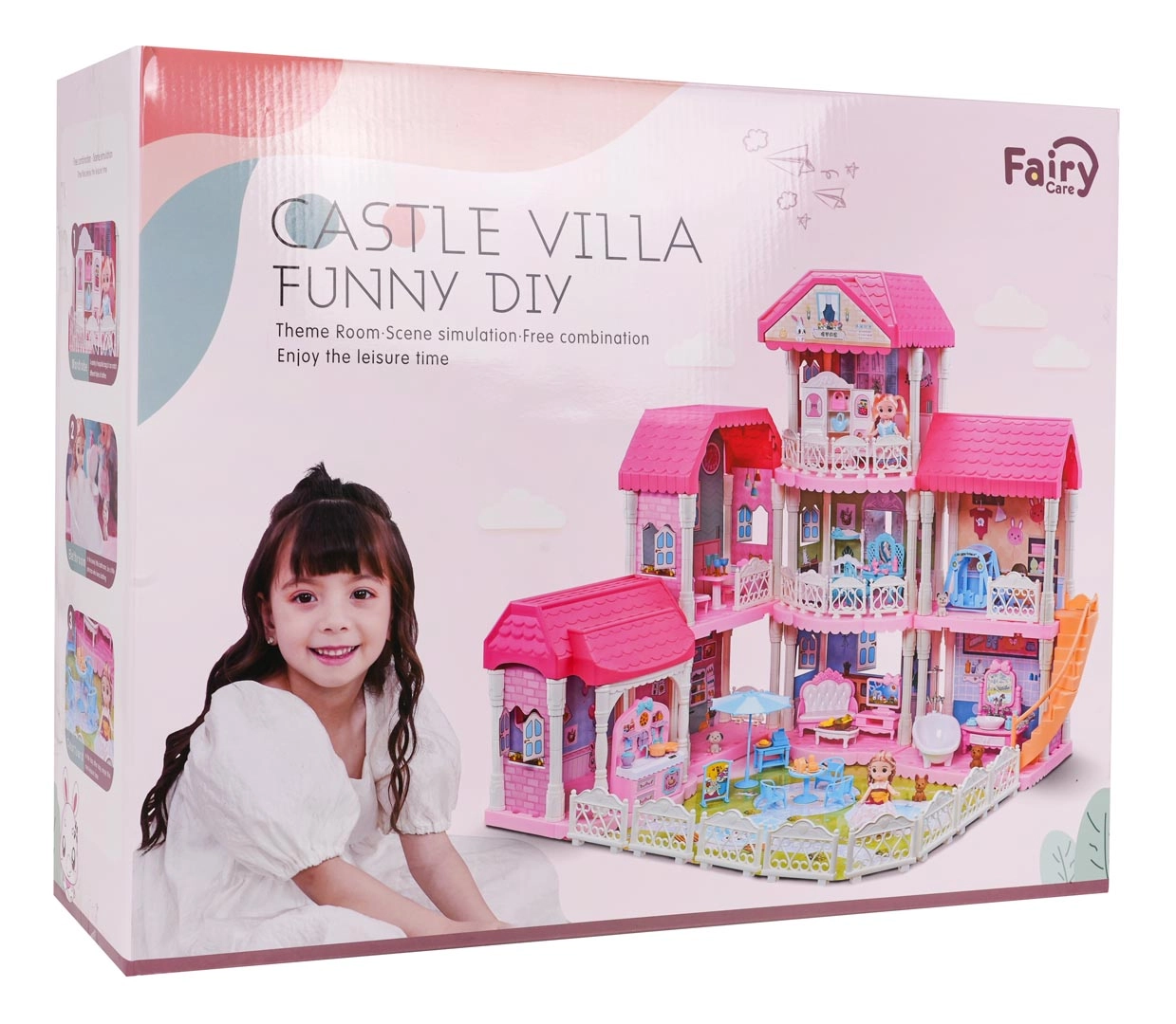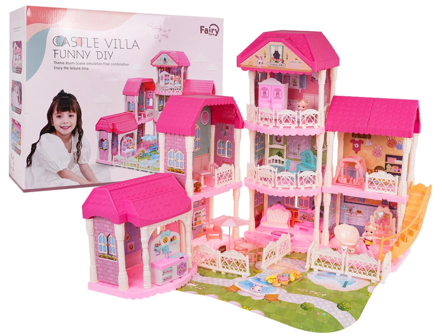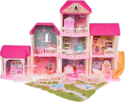 Открийте красивата и голяма розова къща, идеална за деца от три години. Тази приказна къща се състои от 4 отделяеми модула, които можете свободно да комбинирате. Къщата предлага напълно обзаведени хол, баня, спалня, кухня и гардеробна. Не липсват и детска стая и външна зона за релакс.
