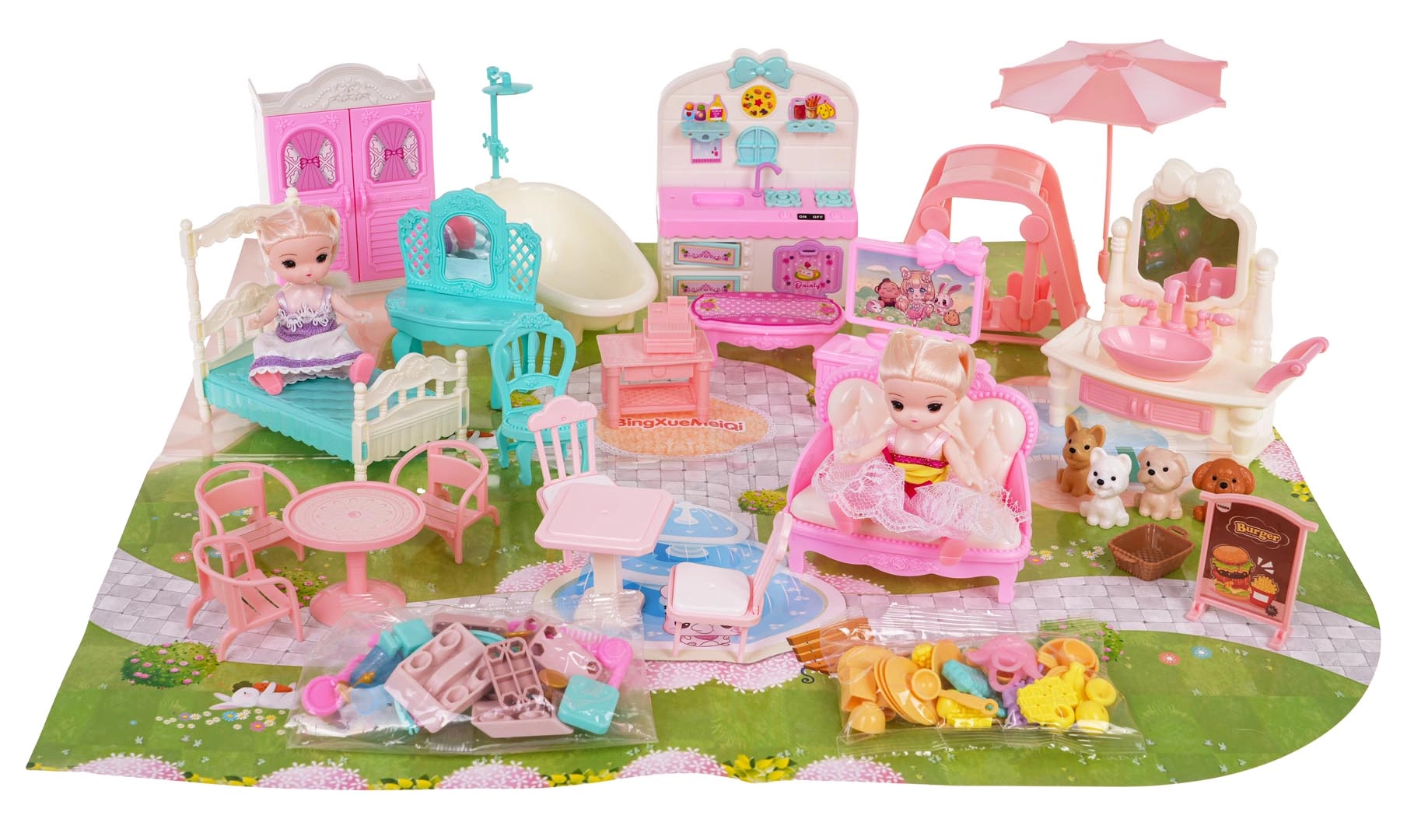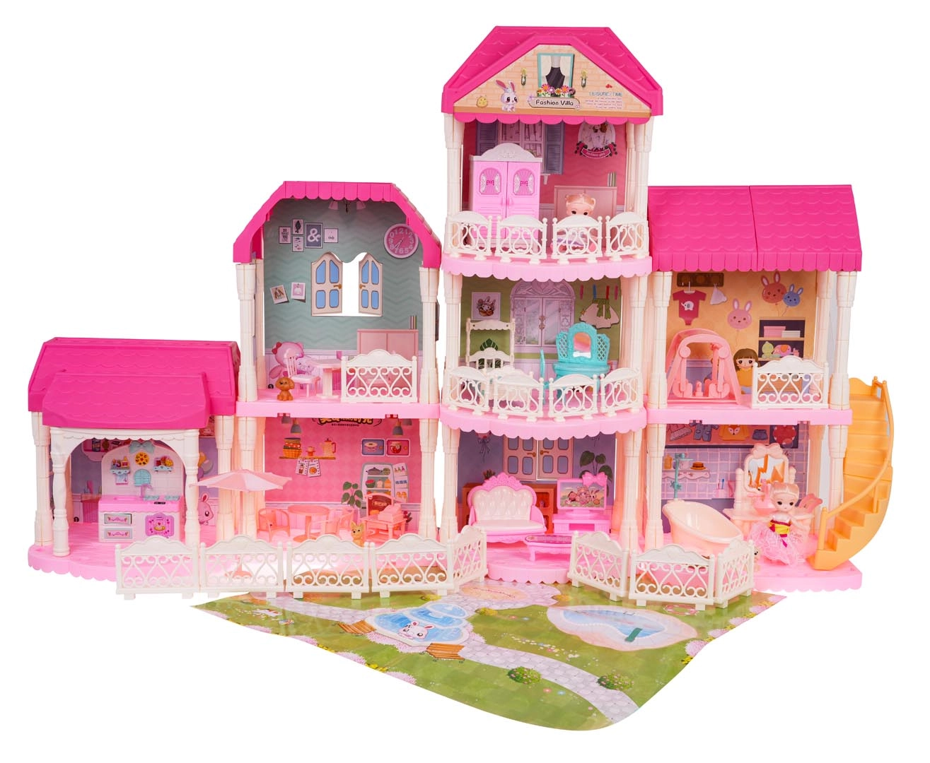 Изработена от качествена пластмаса в ярки цветове, които привличат вниманието на всяко дете. Към къщата получавате и картонена подложка, която допълва целия игрови простор.