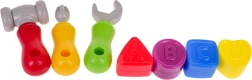 Под плота има отворяемо чекмедже, където децата могат да съхраняват инструменти и блокчета във форма на различни букви и фигури. Работилницата се захранва с три батерии тип AG13, които са включени в комплекта.