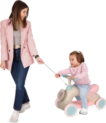 Практичната поставка за крака и 100 см теглещ ремък позволяват на родителите да водят детето или да му дадат почивка по време на по-дълги разходки. Прецизната изработка, ниското тегло и лесната маневреност правят проходилката-колело чудесен спътник у дома и навън.