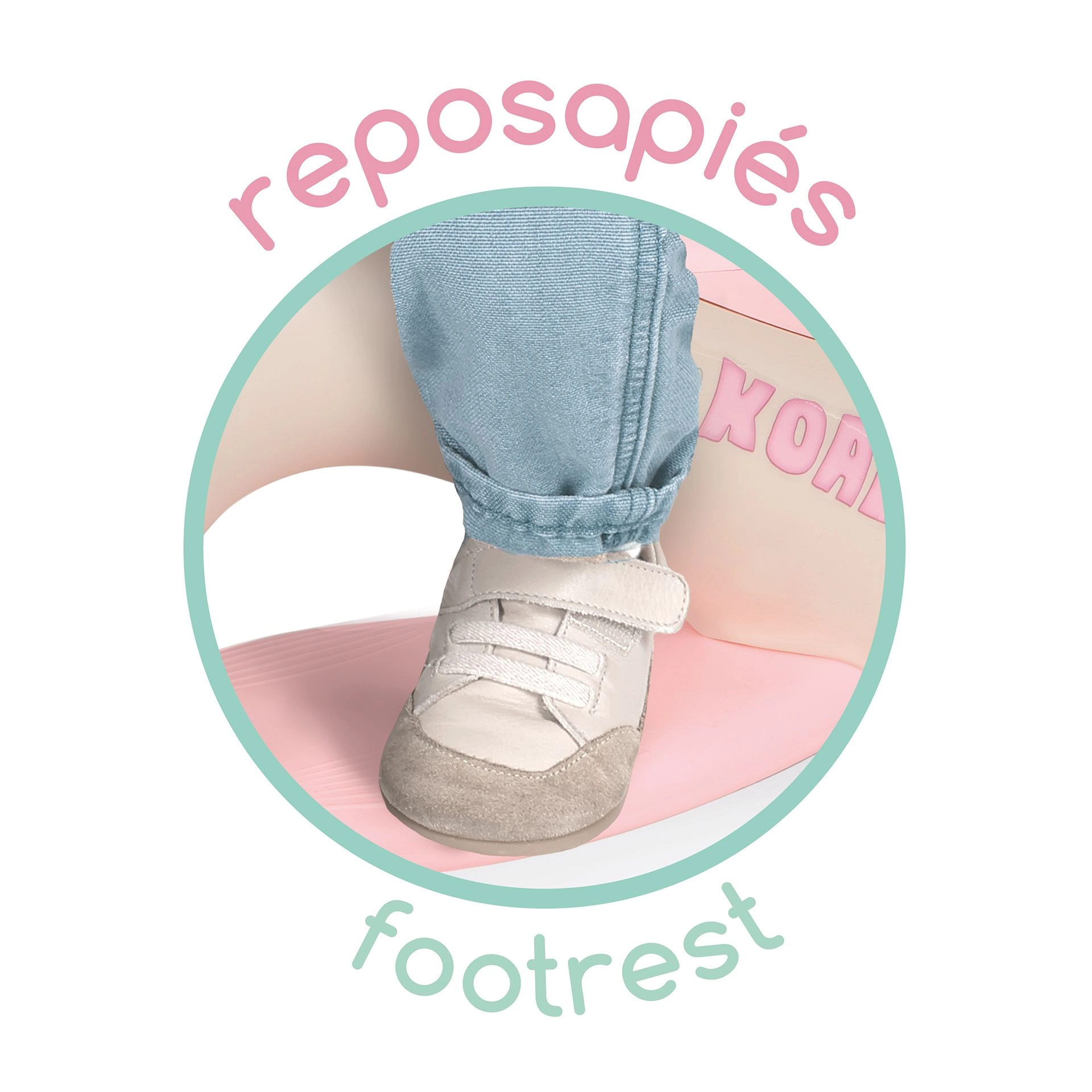 В комплекта има 100 см теглещ ремък за водене на проходилката-колело и поставка за крака, за да може детето да си почине по време на път.