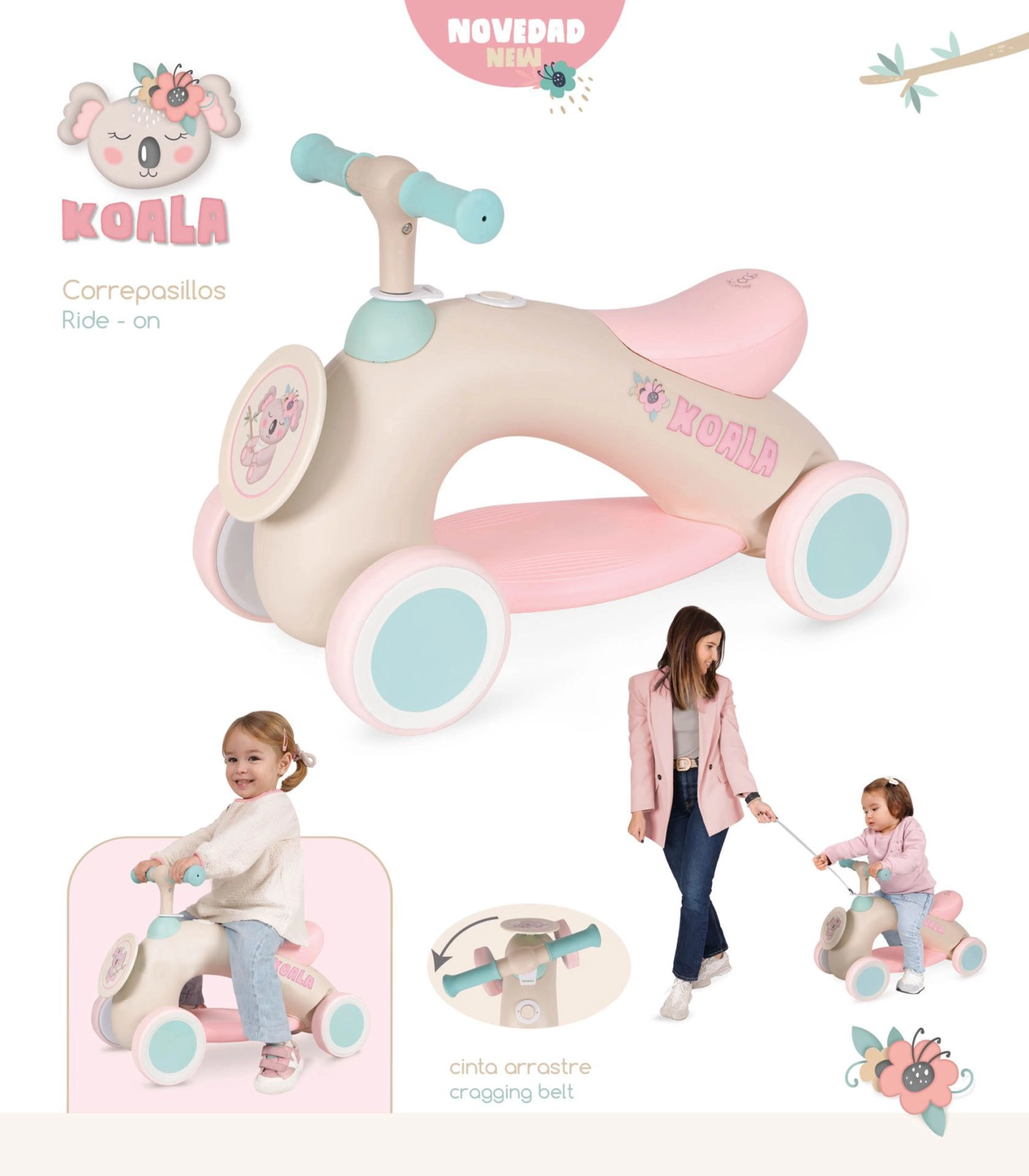 Търсите първо проходилка-колело за малки ездачи? Този модел от нежната колекция KOALA съчетава безопасност, лесно управление и тих режим на работа. Благодарение на стабилната четириколесна конструкция, гумираните колела и удобните ръкохватки децата се учат на координация и управление с усмивка.