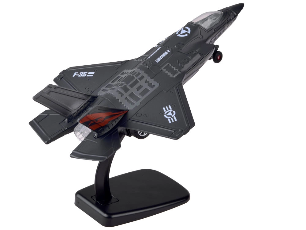 Моделът е подходящ не само за игра, но и като колекционерска придобивка. Благодарение на включената поставка лесно го излагате на рафт. Доставя се в естетична цветна опаковка, така че е готов за чудесен подарък за малки пилоти и любители на военната техника.