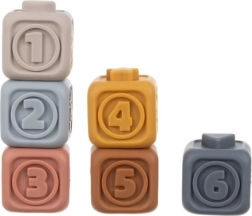 Кубчетата са изработени от мек PVC, което е безопасно и не съдържа вредни вещества. Идеални са както за играчка, така и за дъвкалка.