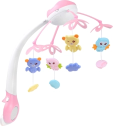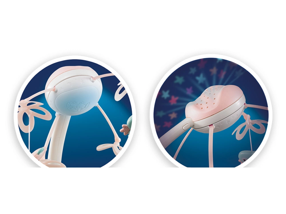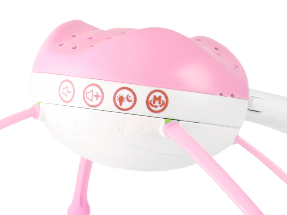 Музикална въртележка с проектор на звезди и дистанционно управление за кошара – Розов