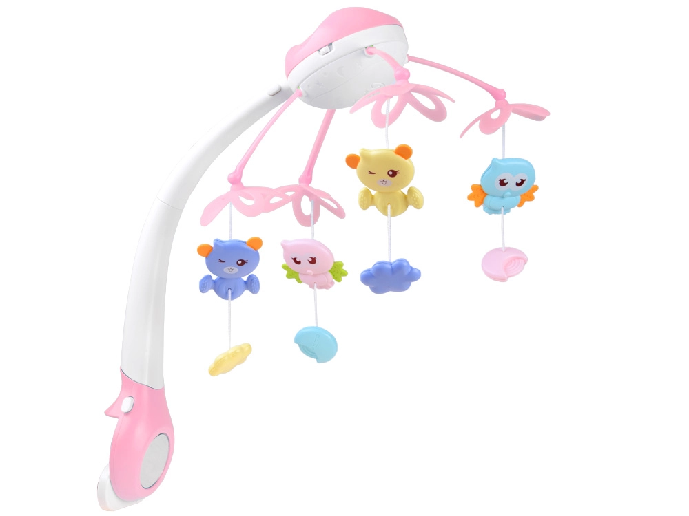 Универсален въртящ се мобил с щипка и плюшени играчки Розов