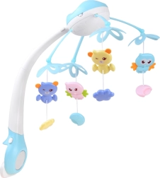 Успокойте бебето и превърнете заспиването в приятен ритуал. Този мобил за кошара комбинира проектор на звездички, успокояващи мелодии, природни и животински звуци и дистанционно управление за максимално удобство на родителите. Пастелните висящи играчки се въртят нежно, стимулират зрението и помагат на детето да заспива по-лесно.
