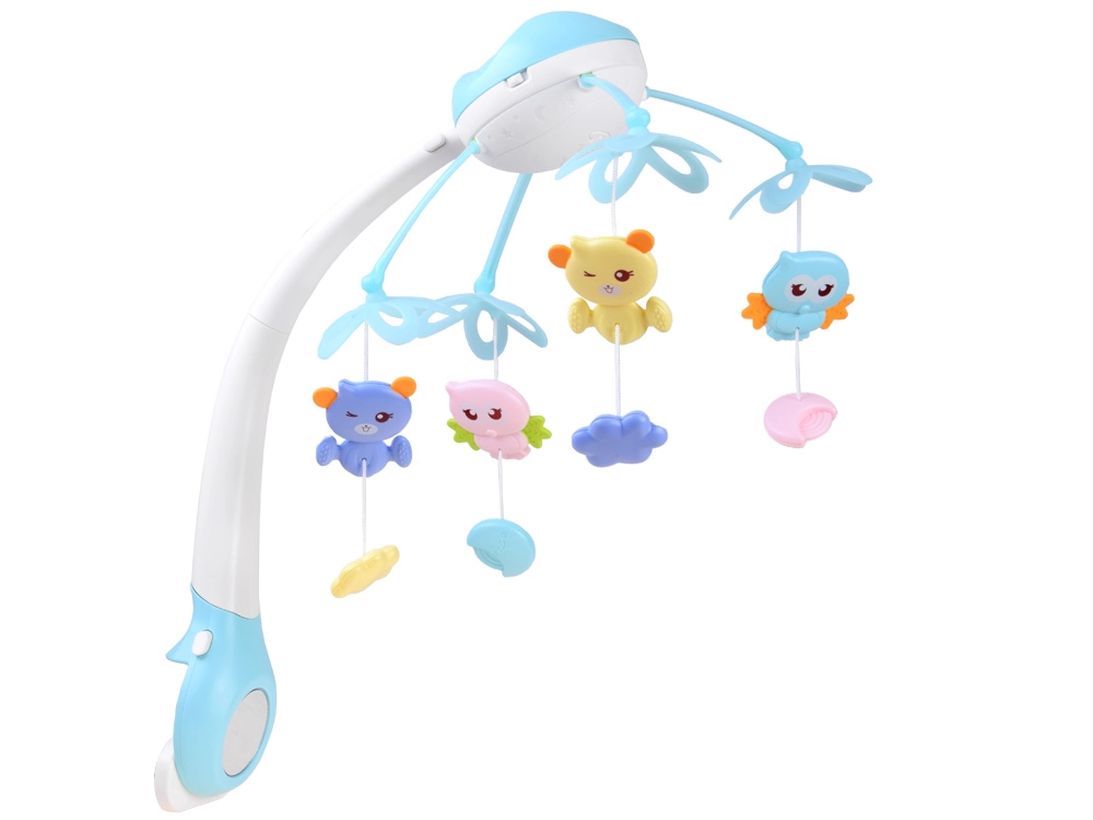 Стабилната пластмасова конструкция със здрав захват се монтира лесно и пасва на повечето бебешки кошари. Пастелните висящи фигурки (сладки животинки) се въртят плавно и привличат вниманието на бебето, като по този начин подпомагат визуалната координация и концентрацията.