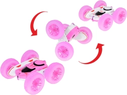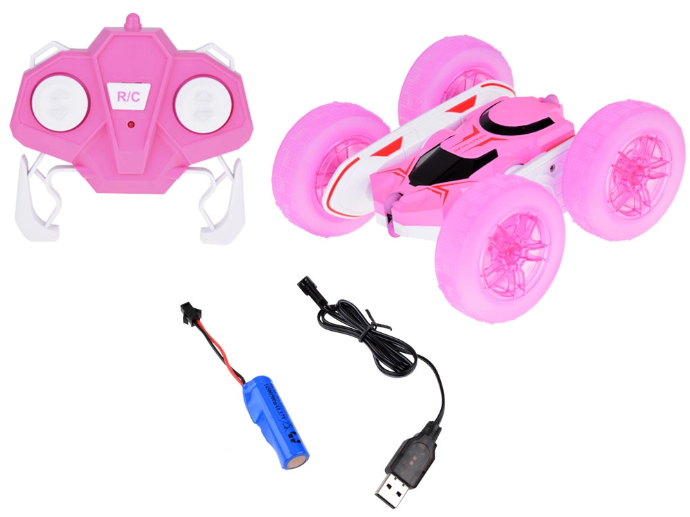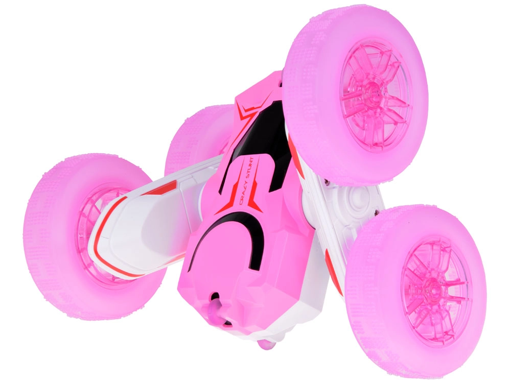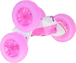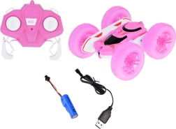 Интуитивното дистанционно управление на 2,4 GHz осигурява стабилен обхват без смущения. Колата се захранва от презареждаща се батерия (USB кабел в комплекта), така че забавлението може бързо да продължи. Идеална като подарък за малки почитатели на скоростта, триковете и акробатичното шофиране.