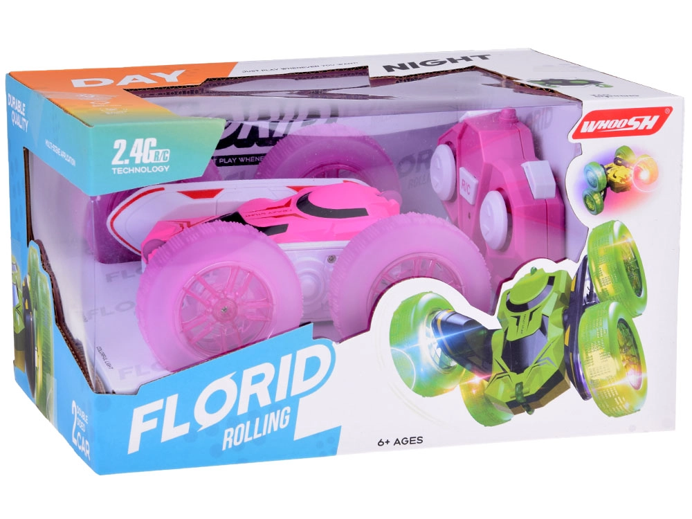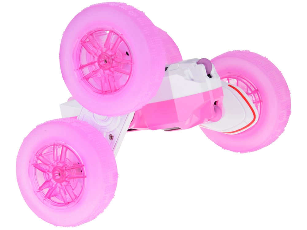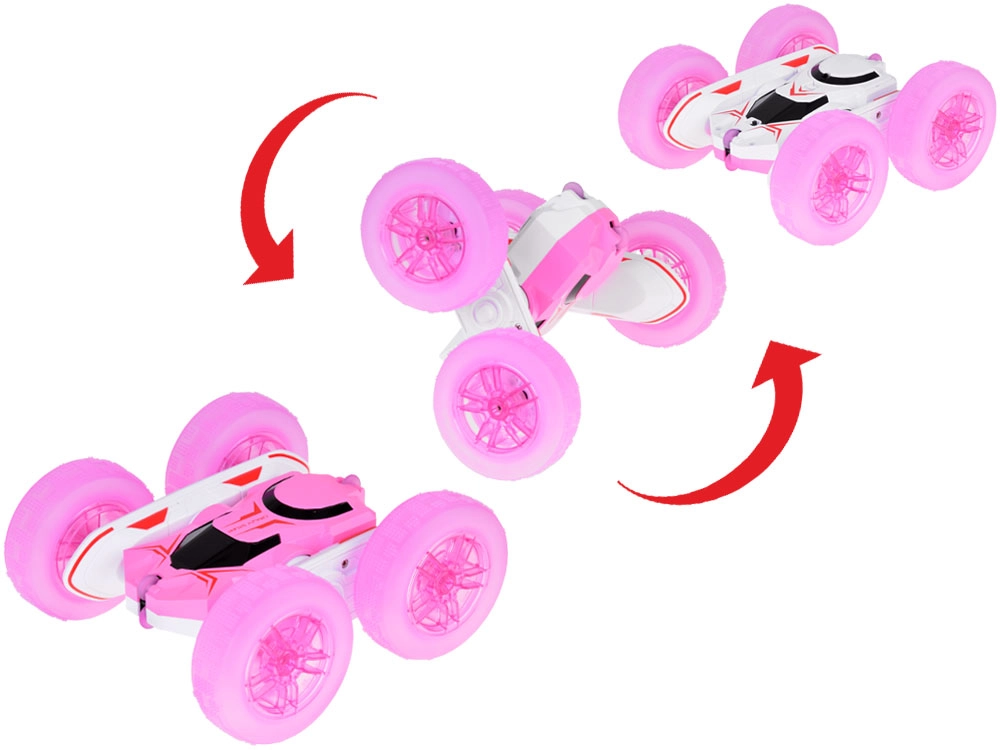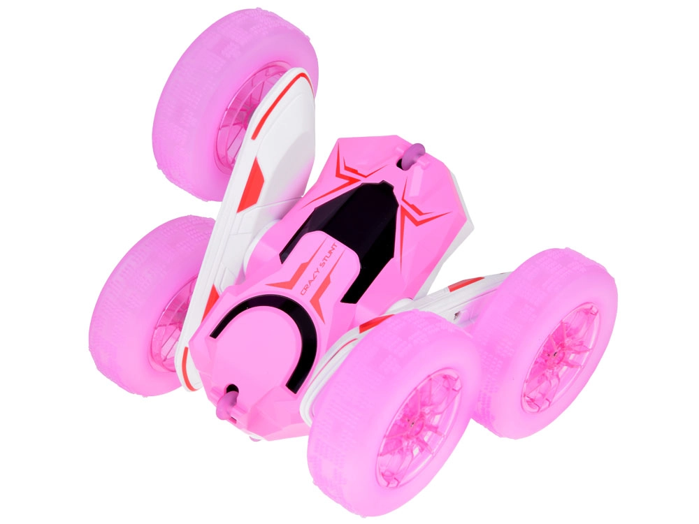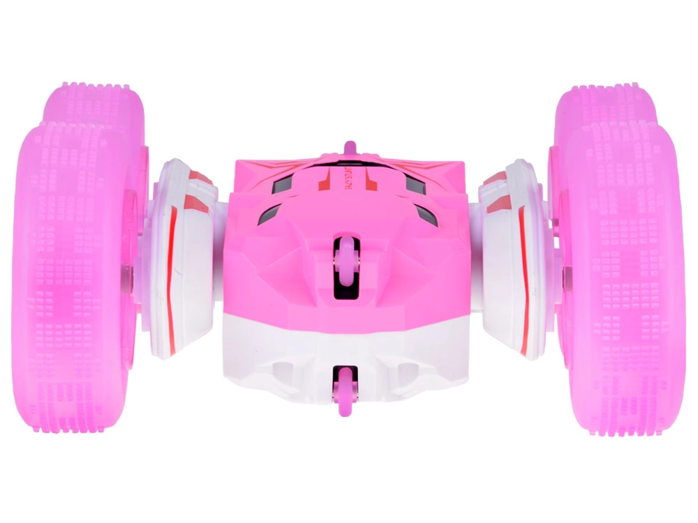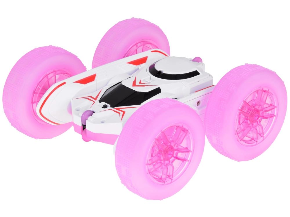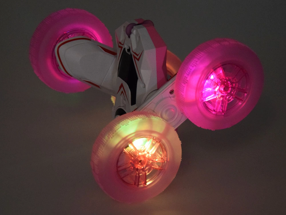 Забавен двустранен RC автомобил за деца, който прави 360° завъртания, движение напред/назад и каскадьорски трикове. Големите гумени колела с изразен протектор и светлинни ефекти на колелата осигуряват екшън у дома и навън. Управление на 2,4 GHz, презареждаща се батерия и устойчива конструкция за безкрайно забавление.