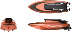 Тази оранжева RC лодка е идеална за басейни, езерца и спокойни водни повърхности. Управлението във всички посоки и практичният бутон за моментално ускорение предлагат динамично каране и страхотно изживяване. Сензорът за вода предотвратява пускане на сухо, така че работата е безопасна и щади мотора.