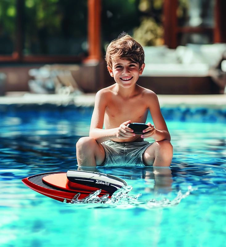Забавна и пъргава RC лодка за деца и начинаещи, която се движи във всички посоки и предлага допълнително ускорение за няколко секунди. Благодарение на сензора за вода се включва само при потапяне, безопасна е и лесна за управление. Обхват 10–15 м, бързо USB зареждане и каране 8–12 минути гарантират много водни забавления.