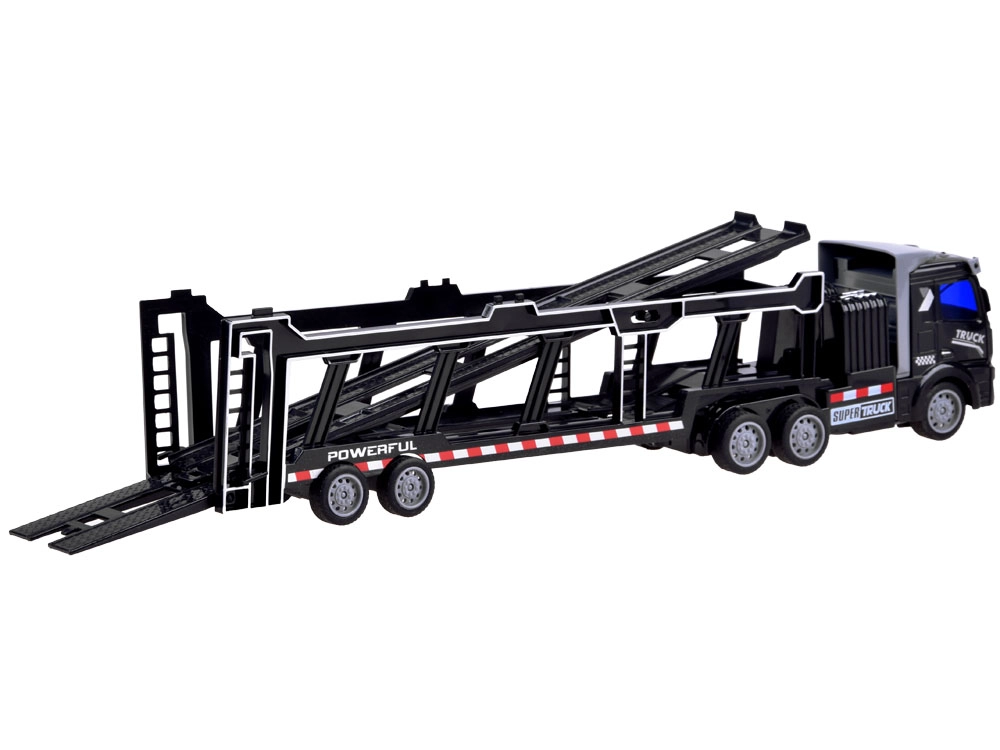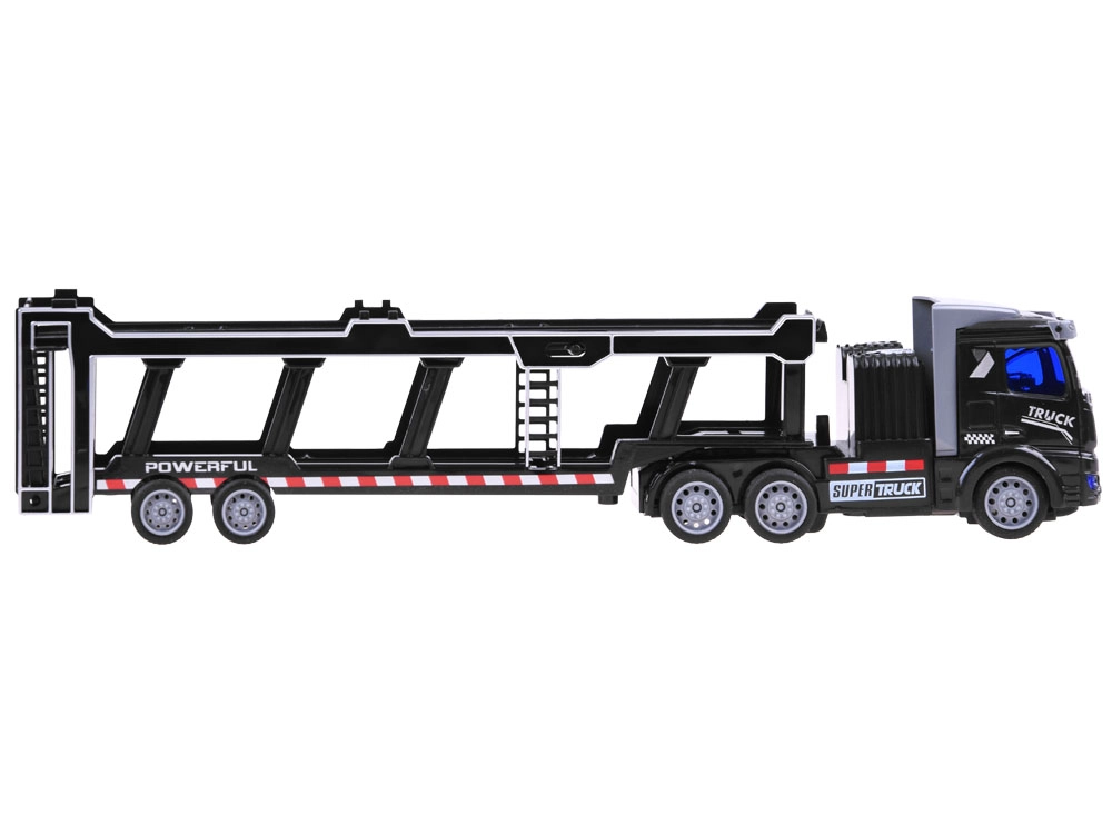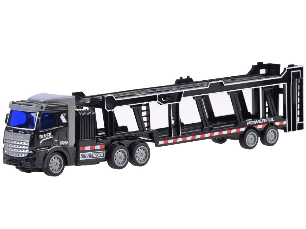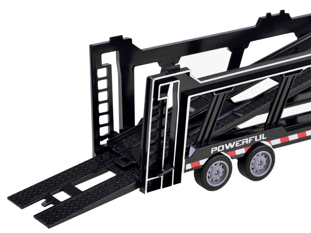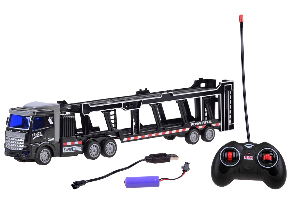 Ремаркето е напълно сваляемо и съдържа подвижни елементи като отварящи се задни врати и повдигаща се горна палуба, което позволява превоз на допълнителни играчки. Дистанционното управление, работещо на 27 MHz, осигурява пълен контрол върху движенията на камиона – напред, назад, наляво и надясно.