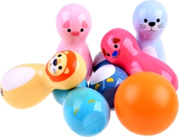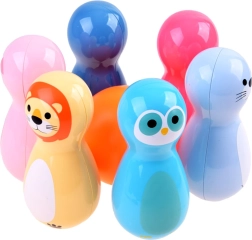 Този комплект кегли с животни предлага чудесна възможност за децата да направят играта си по-цветна и весела. Всяка кегла има вътрешна дрънкалка, която при падане издава весел звук, добавяйки още забавление. Играта усъвършенства координацията на движенията и развива креативността. Детето може да играе както на закрито, така и на открито, което осигурява гъвкавост на игровите възможности.