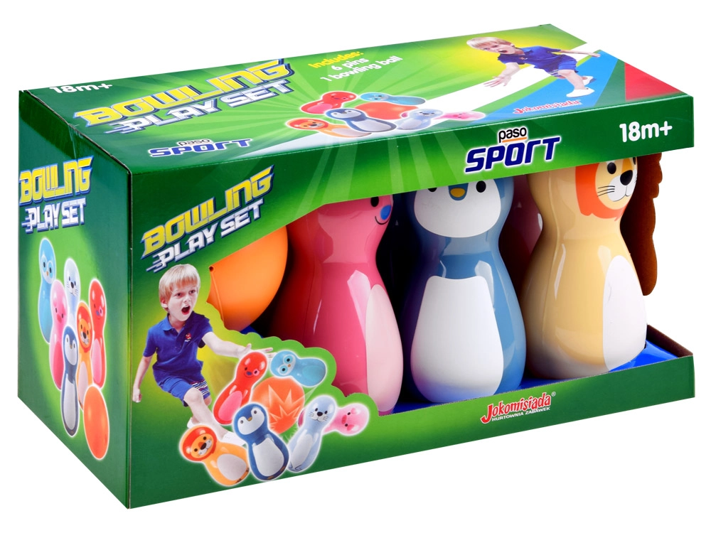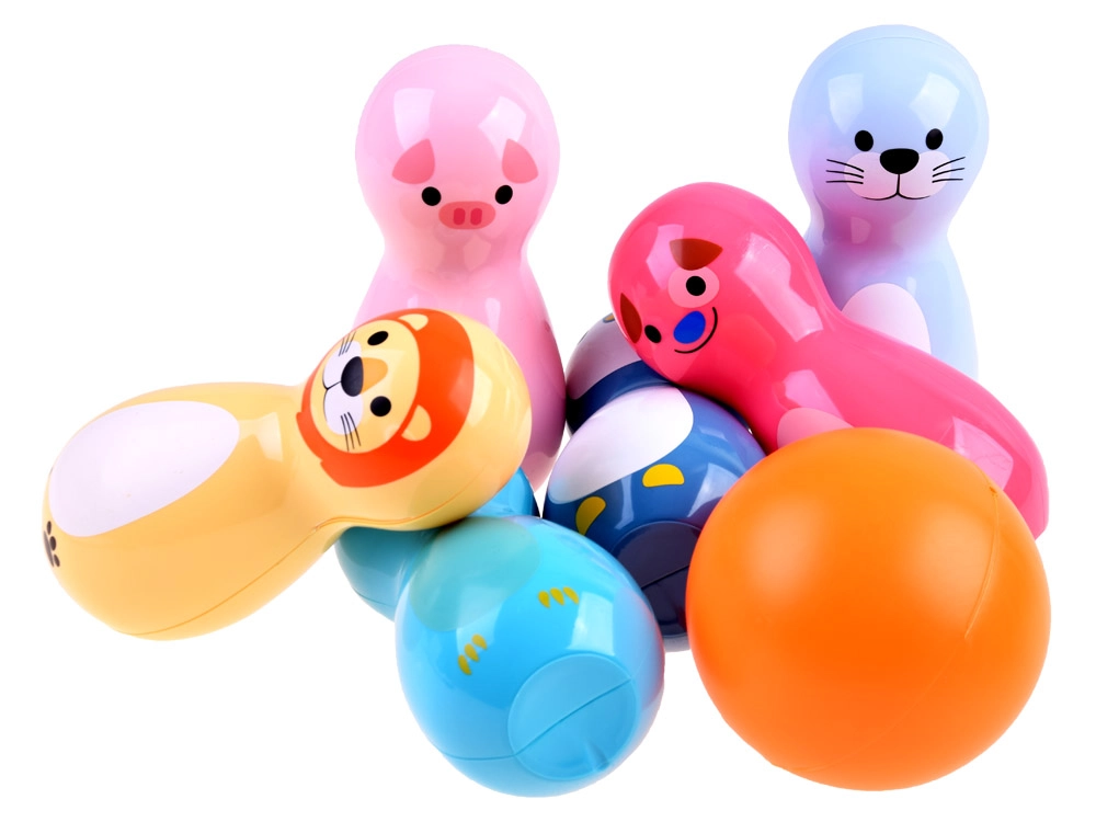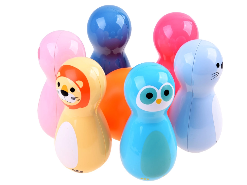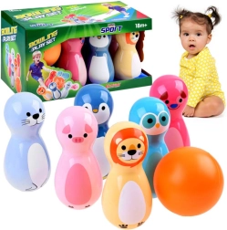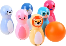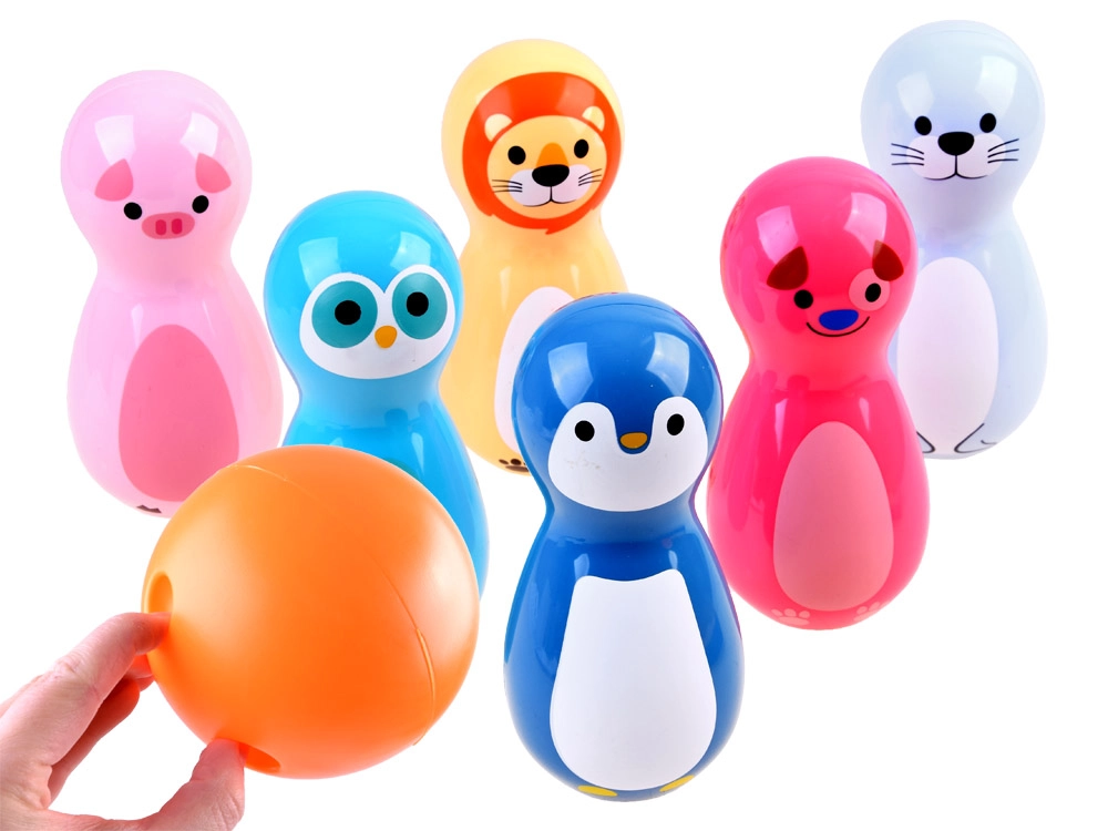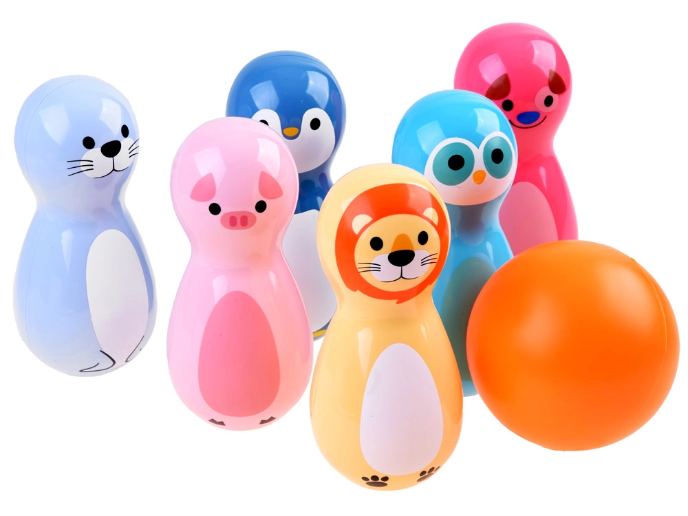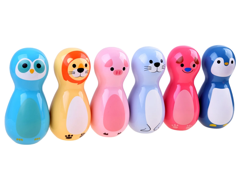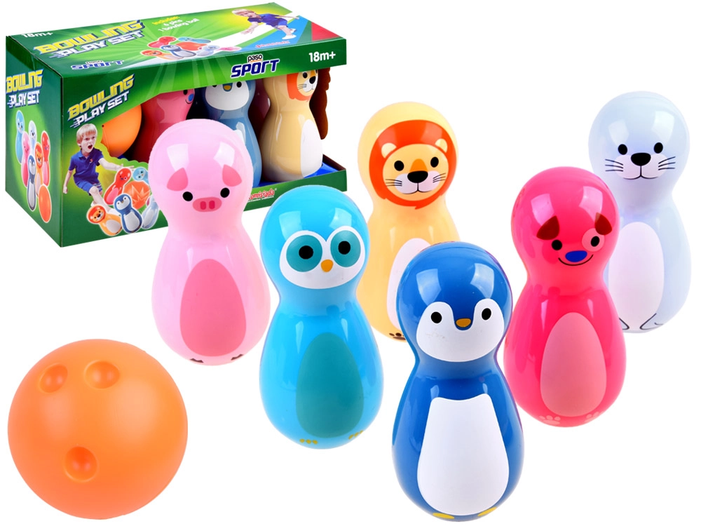 Всяка кегла е с весели животински мотиви и ярки цветове, които приканват децата към игра.