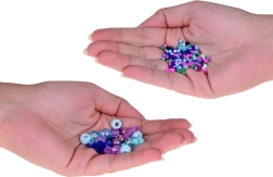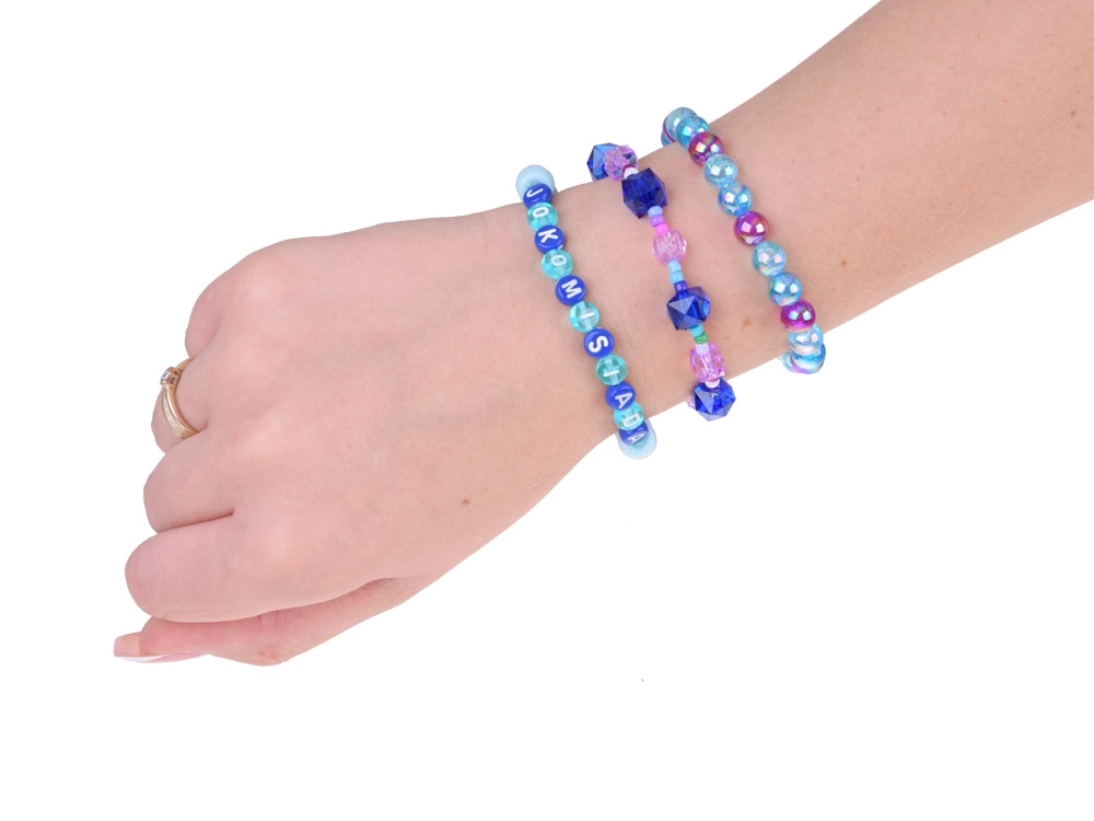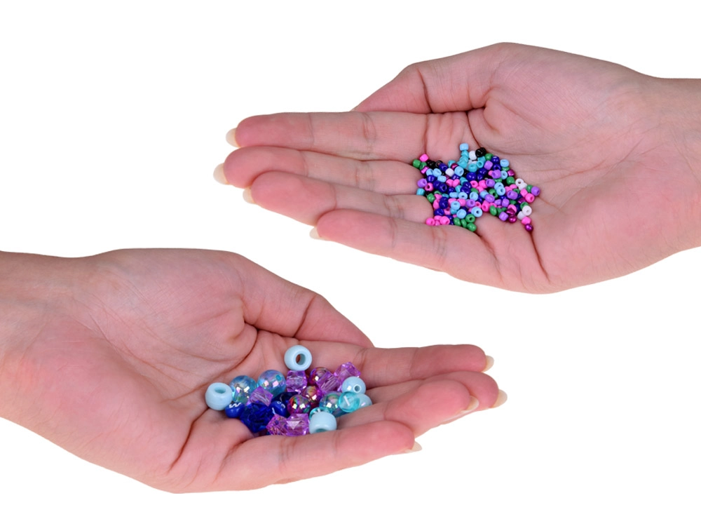 Изработката на бижута с този комплект развива сръчността, насърчава креативността и дава възможност да изразите себе си чрез ръчно изработени аксесоари. Благодарение на богатата гама от цветове – като нюанси на жълто, оранжево, розово, лилаво, зелено, тюркоазено, златно, бяло, черно и червено – и мъниста с буквички, сърчица и усмихнати личица, всеки проект става изключителен и единствен по рода си.