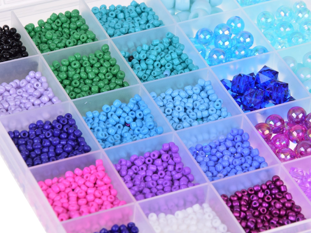 Комплектът се предлага в подредена кутия, която улеснява организирането и съхранението на мънистата, идеална за прибиране и пренасяне.