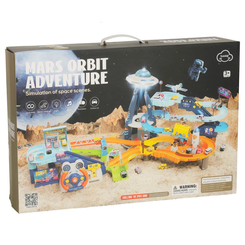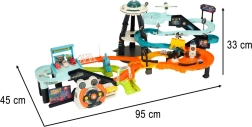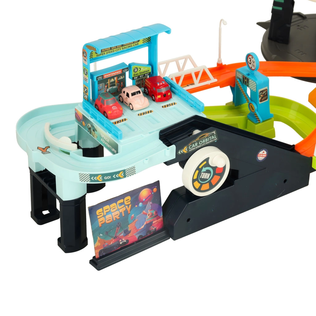 Потопете се в космическо царство, изпълнено с приключения, където пистата предлага две различни конфигурации – децата могат да създадат отделни трасета или да ги свържат в едно дълго трасе с много завои и спускания. Изчистеният дизайн насърчава детската креативност и позволява различни игрови сценарии.