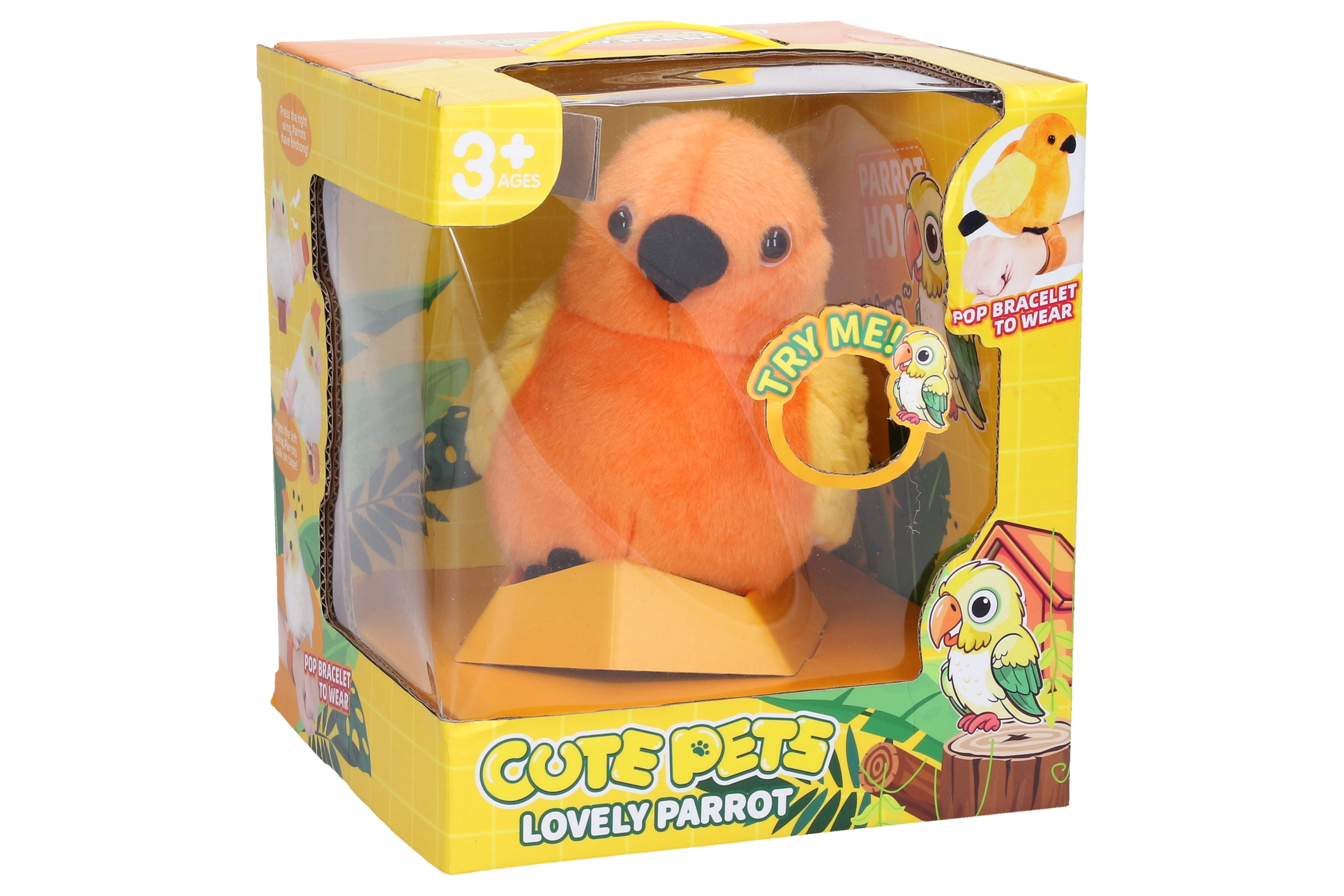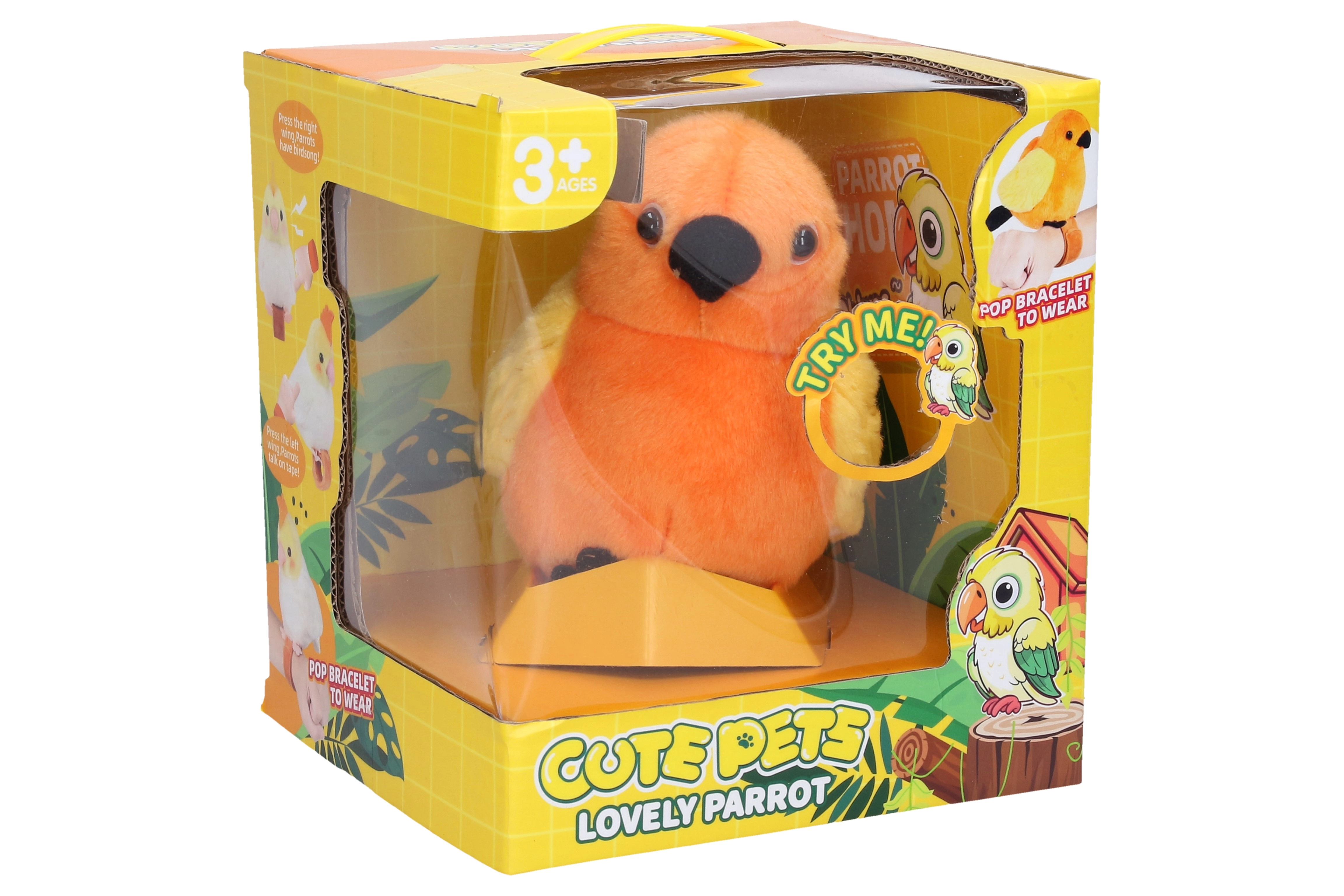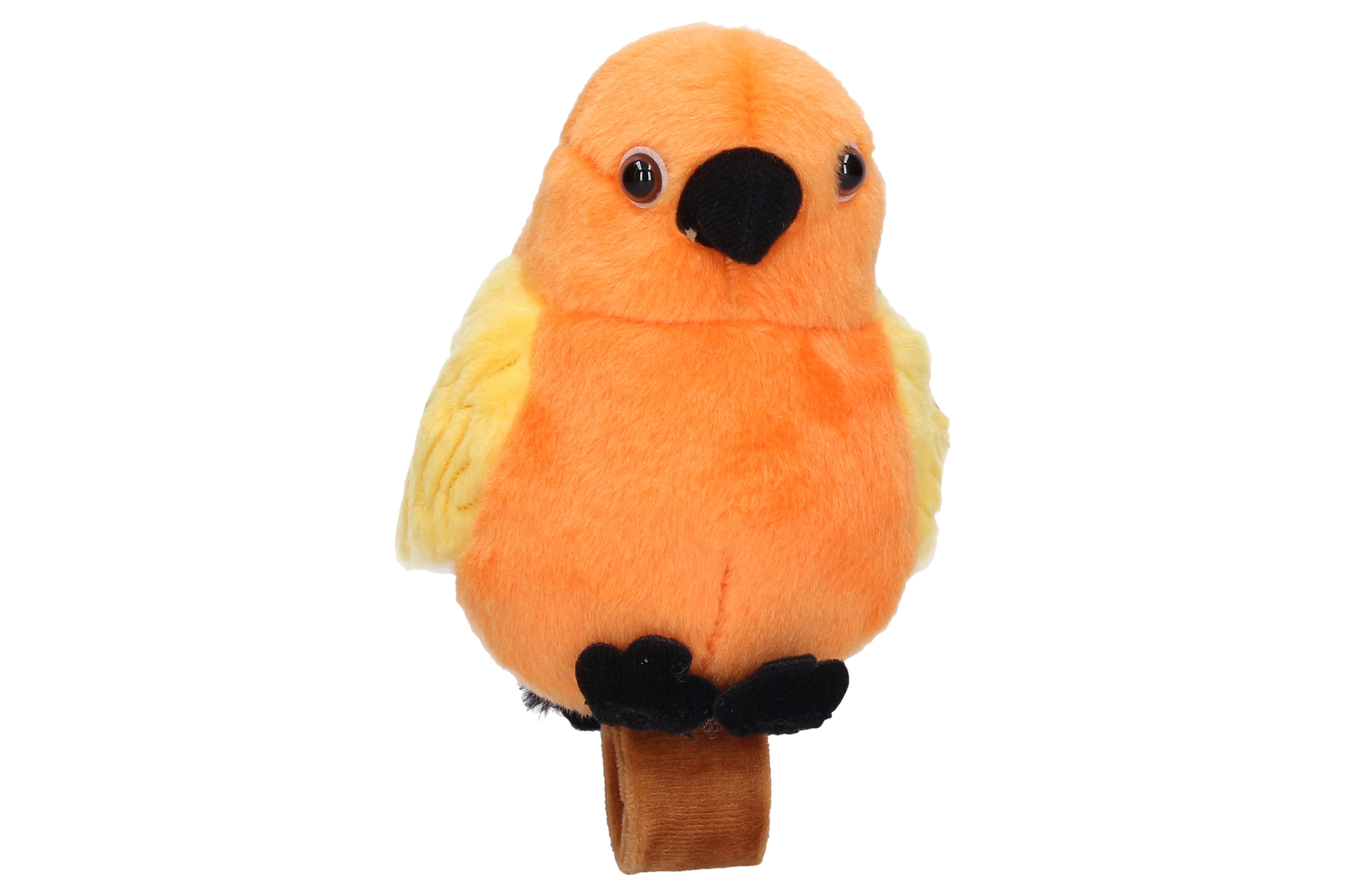 Очарователната птичка, която повтаря, носи часове смях и игра. Благодарение на компактния размер от 17 см отлично приляга в детската ръка и бързо се превръща в любим спътник. С десния бутон на крилото активирате птичия песен, а с левия бутон птичката повтаря всичко, което казвате.