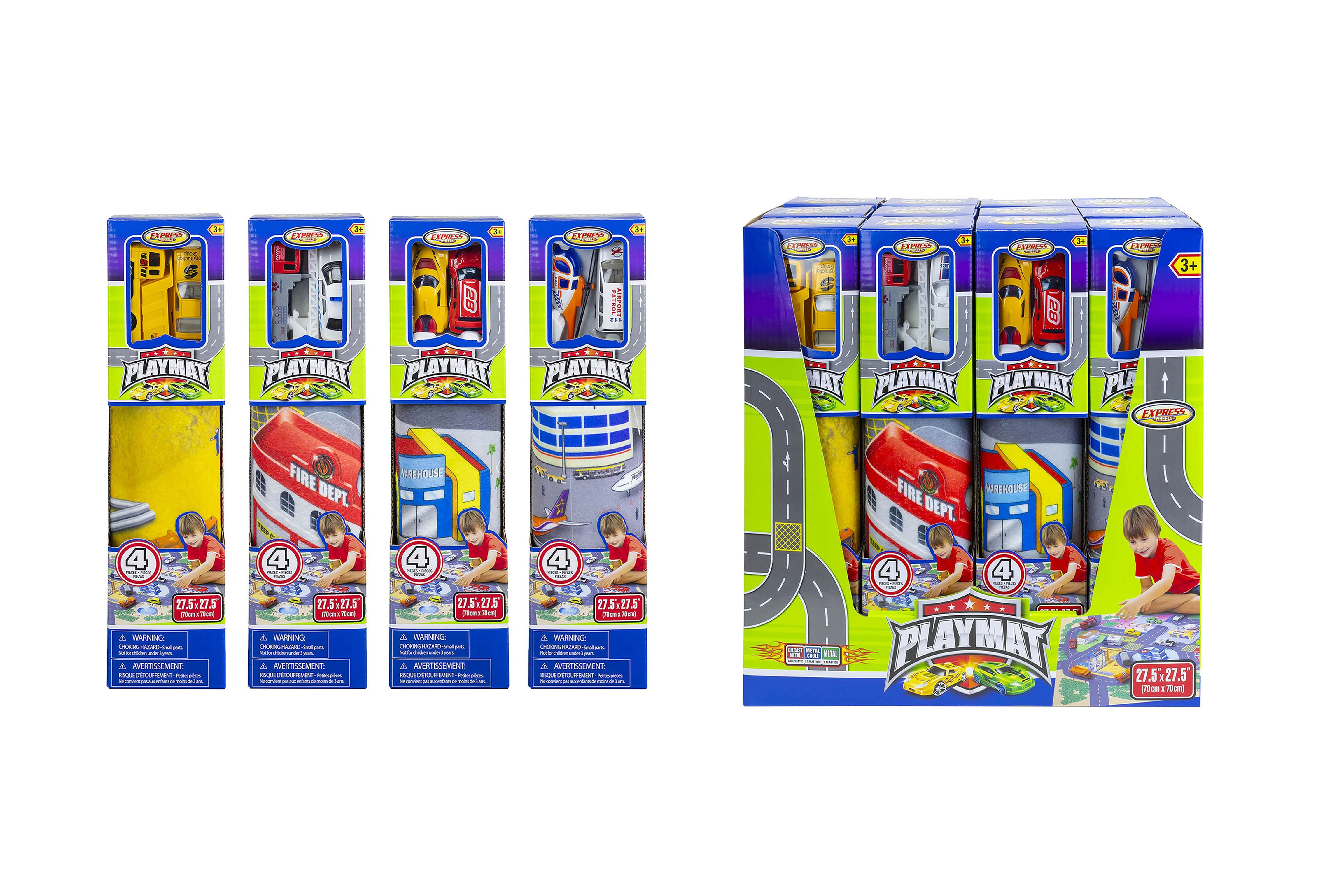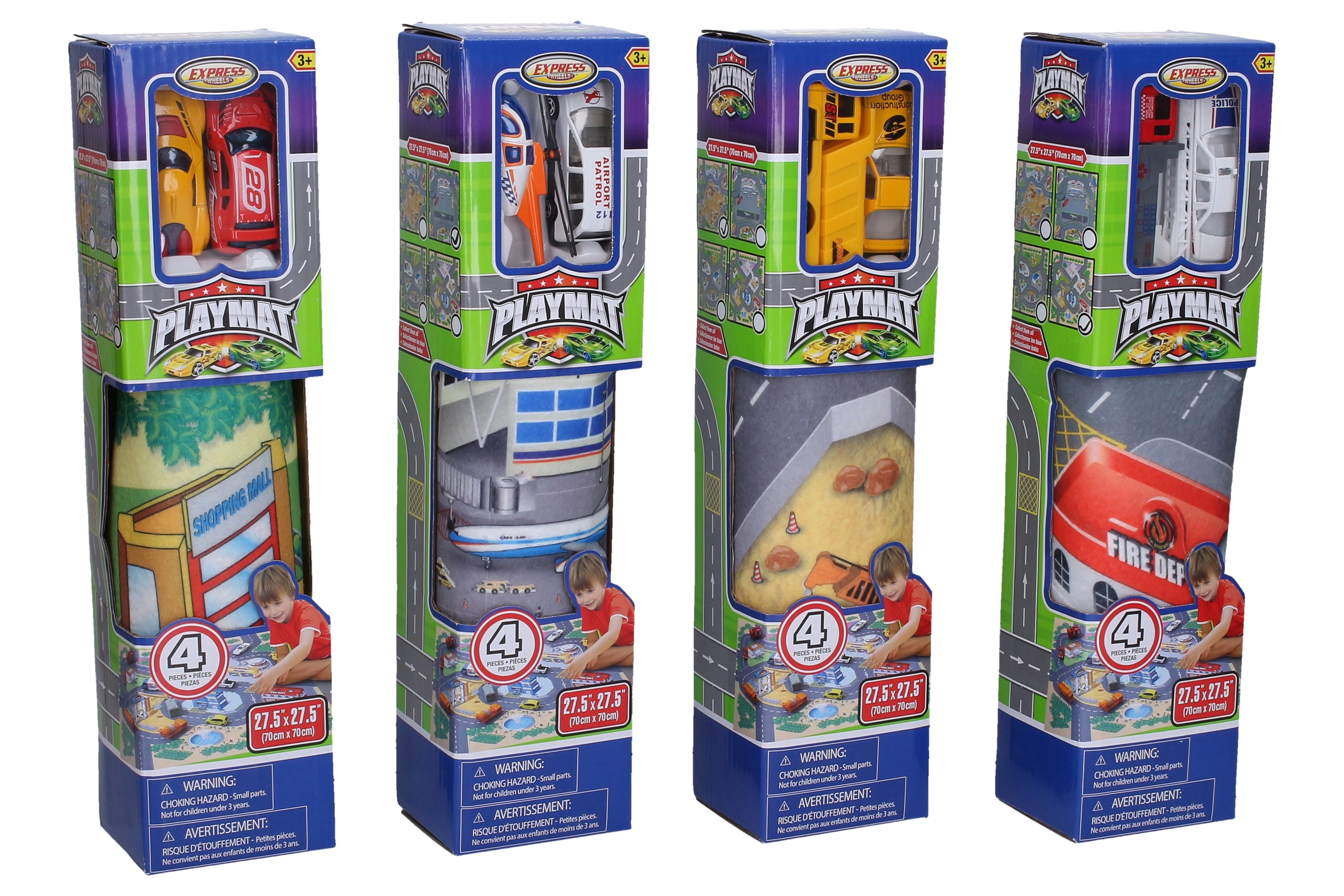 Изберете от 4 различни мотива, които насърчават креативната игра и изучаването на пътни ситуации: спасителни служби, летище, строителен и състезателен. Всяка опаковка съдържа 2 метални превозни средства, които перфектно съответстват на избраната карта.