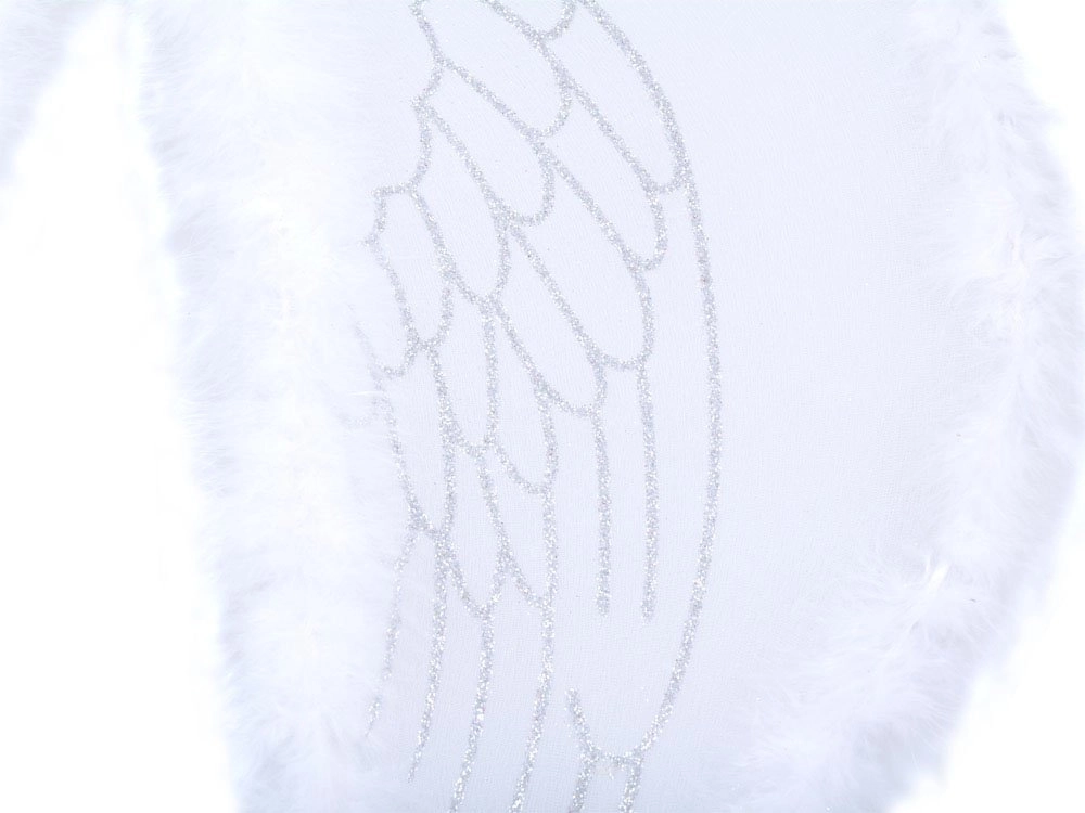 Бели крила със сребърни украси и пухкава периферия осигуряват вълшебна визия.