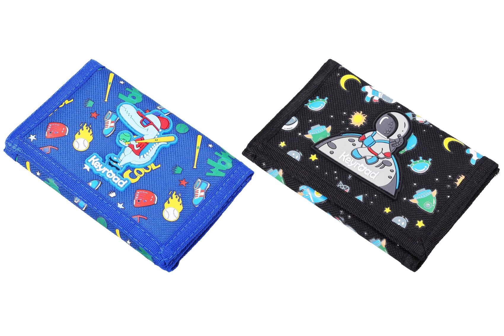 Изберете между два стилни мотива: син с игрив динозавър или черен с космонавт за малките изследователи. Портфейлът се доставя в плик и е практичен подарък за деца.