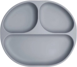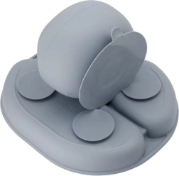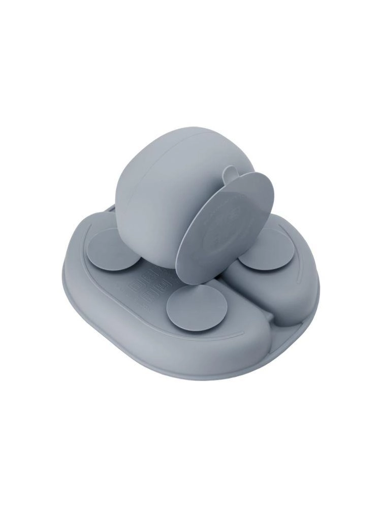Благодарение на неплъзгащите вендузи купата и чинията остават на място, което намалява риска от разпиляване по време на хранене. Разделената чиния допълнително помага на децата по-лесно да разберат основните правила за порции и разделяне на храните. Мекият силиконов лигавник с дълбок джоб ефективно предпазва дрехите от изцапване.