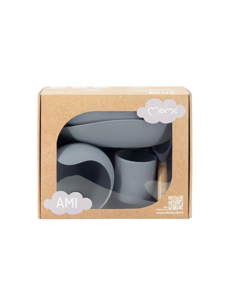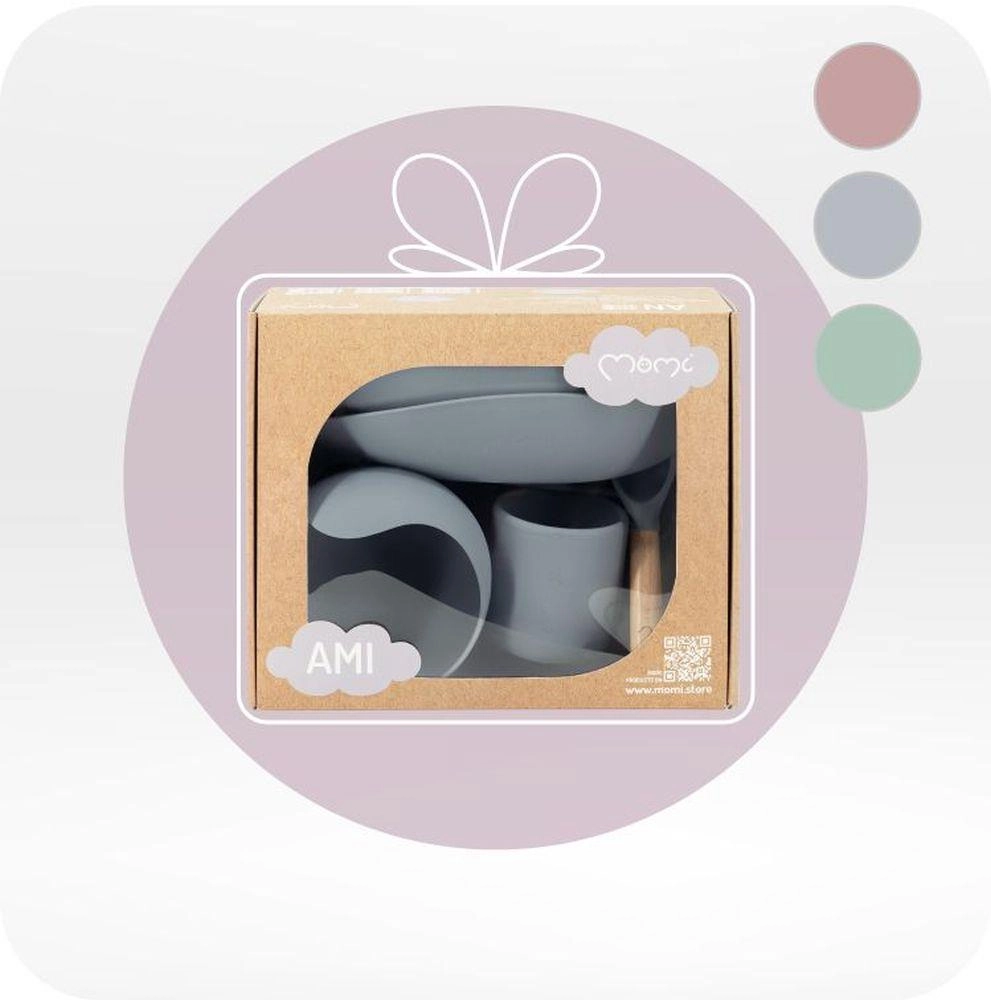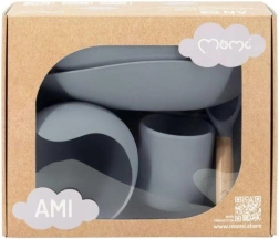 Комплектът за хранене MoMi AMI е проектиран така, че да позволи на децата лесно и забавно да се научат да се хранят самостоятелно. Съдовете са изработени от издръжлив материал, подходящ за миене в съдомиялна и затопляне в микровълнова фурна. Липсата на BPA и фталати гарантира безопасност за вашите деца.