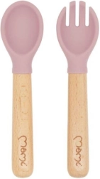 Меките силиконови накрайници са щадящи за венците и зъбите, а дървените дръжки са удобни за детската ръка. Чудесни за първите опити за самостоятелно хранене.