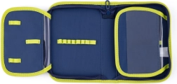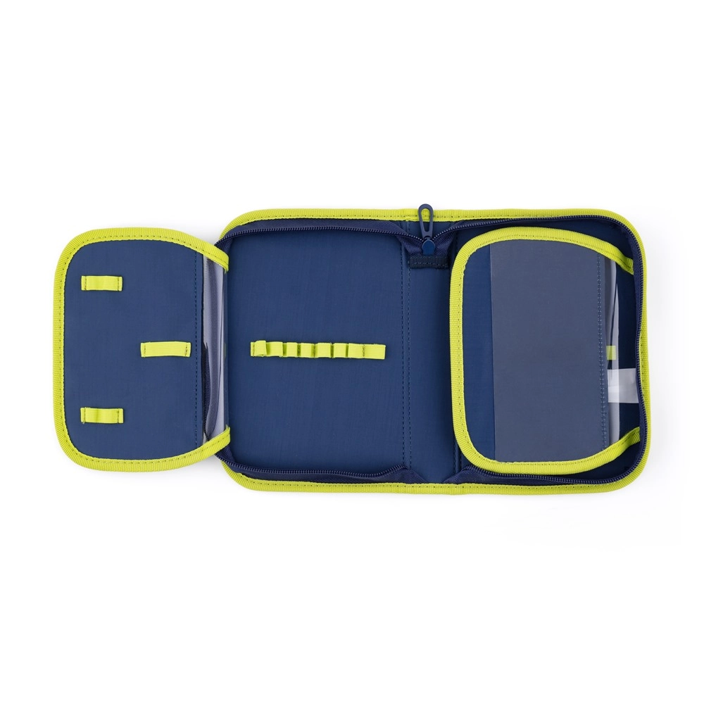 Част от комплекта са здрава мешка за спорт със стягащи връзки – идеална за училище и занимания – и едноетажен несесер без пълнеж с две клапи, ластични държачи за писалки и прозрачна вложка за седмичното разписание. Светлоотразителните елементи на раницата повишават видимостта и безопасността на децата по пътя към училище.