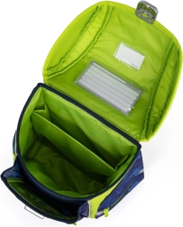 Вътрешен разделител, множество джобове и подреден интериор поддържат ред в учебните принадлежности. Светлоотразителните елементи повишават видимостта и безопасността на децата.