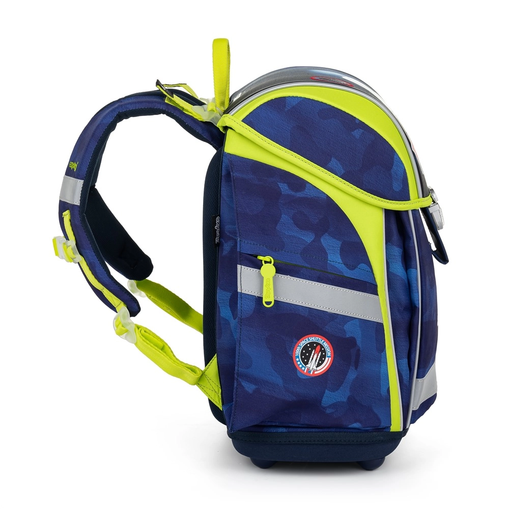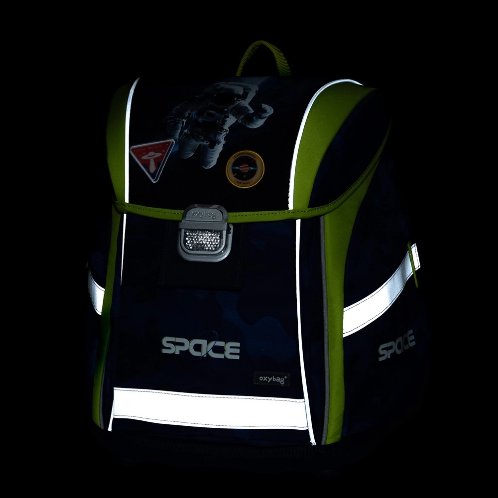 Училищният комплект Premium Light Space ще зарадва всички малки изследователи на космоса. Леката раница с обем 27 л и товароносимост 8 кг предлага комфорт при носене благодарение на дишащата подплата на гърба, широките омекотени презрамки и гръдната и пристягаща лента за перфектно прилягане на гърба. Налице са вътрешен разделител и достатъчно джобове за ясно подредено съхранение на учебните принадлежности.