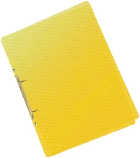 Жълт класьор формат A5, изработен от устойчив полипропилен, идеален за ежедневна работа или учене. Неговият стабилен дву-рингов механизъм осигурява надеждно закрепване на документите.