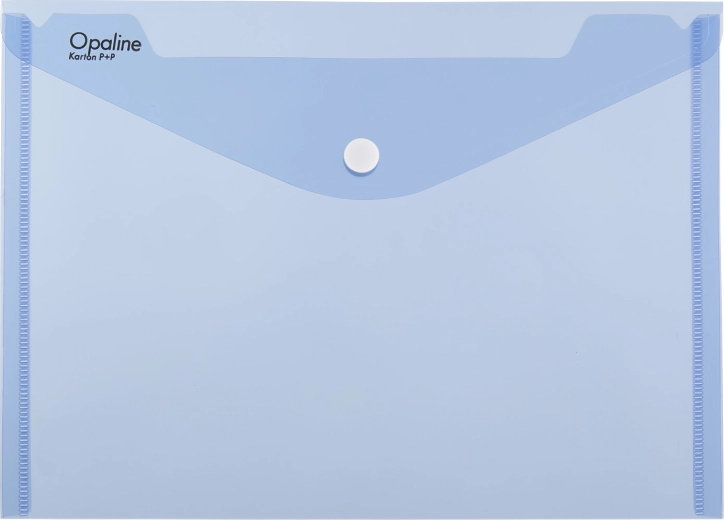 Практичният плик OPALINE във формат A4 пази документите ви в безопасност. Издръжлив полипропилен 180 µm, надеждно закопчаване с копче и син цвят за лесно разграничаване. Доставя се в опаковка от 5 броя.