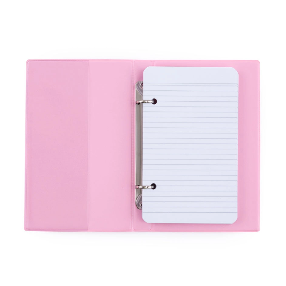 Практичен тефтер с ринг в модерен пастелно розов цвят, идеален за ежедневни бележки и планиране. Съдържа 100 линеени листа и позволява лесна подмяна на пълнители.