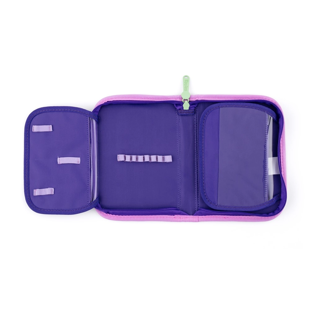 Ученическият несесер Pegas разполага с едно основно отделение, което лесно побира всички ключови писмени принадлежности като химикалки, моливи, пастели и флумастери. Две вътрешни крила осигуряват достатъчно място за важни училищни пособия. От едната страна ще намерите място за учебни разписания, таблица за умножение и бележки, докато другата страна предлага допълнително пространство за други писмени инструменти.
